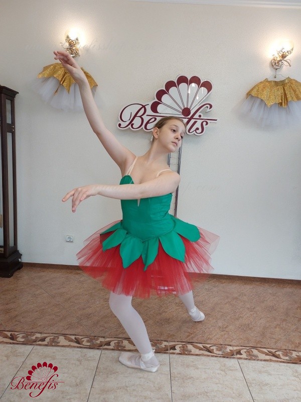 The bodice is fastened with hooks in two rows for convenient adjustment, the inner cord serves to tighten the bodice in the chest area. Skirt 3 flounces, panties biflex. The tire is made in the form of eight petals.