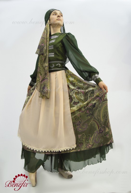 In the front is an apron, the bottom of which is decorated with delicate lace, and is pleated on the top. An apron lends style of a rural woman.