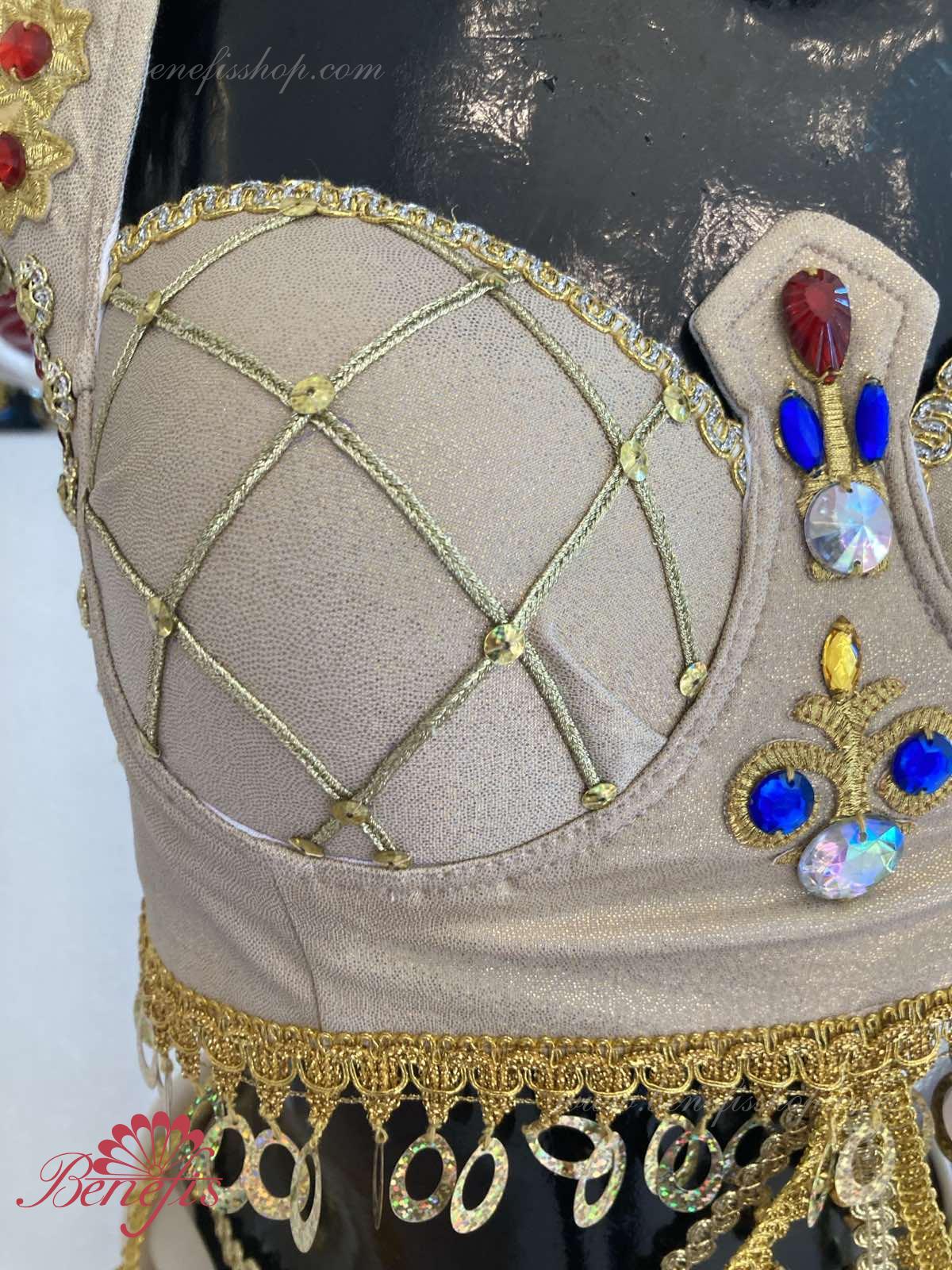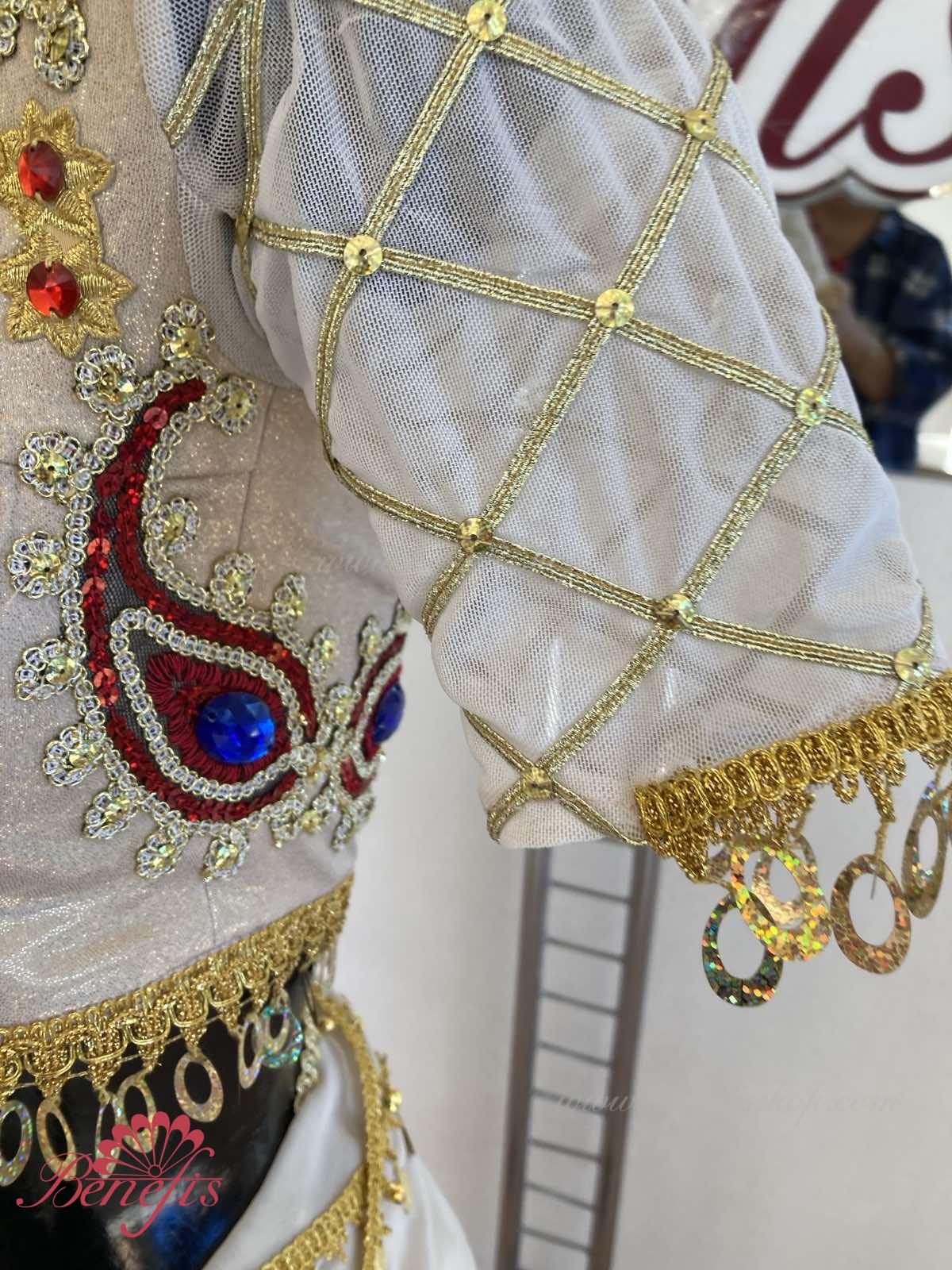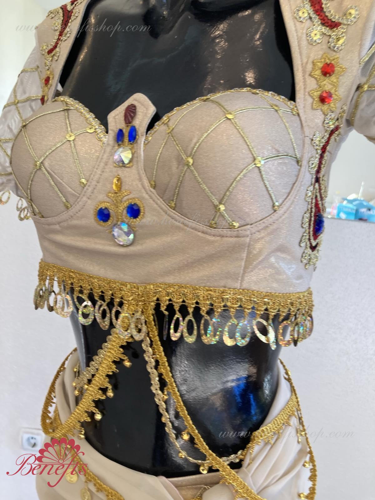 The whole costume is decorated with: braid, rhinestones, sequins, pendants.