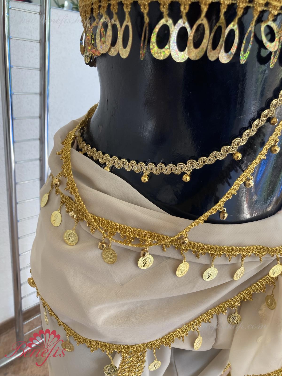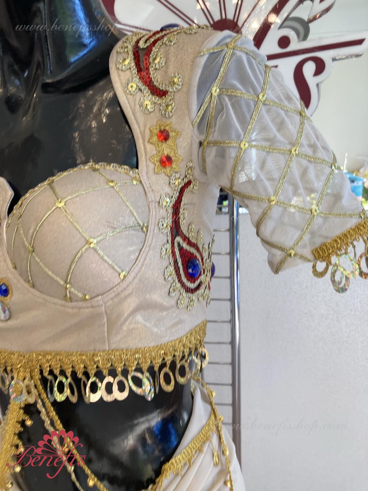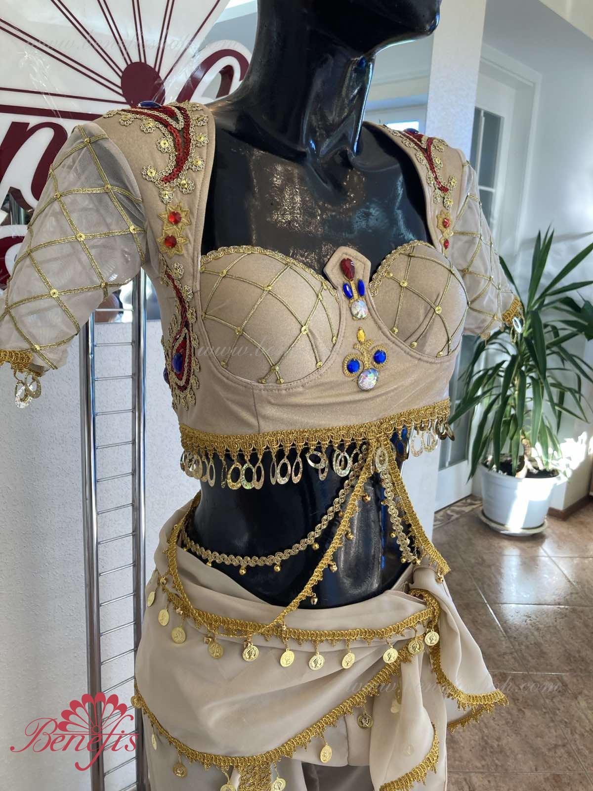 The whole costume is decorated with: braid, rhinestones, sequins, pendants.