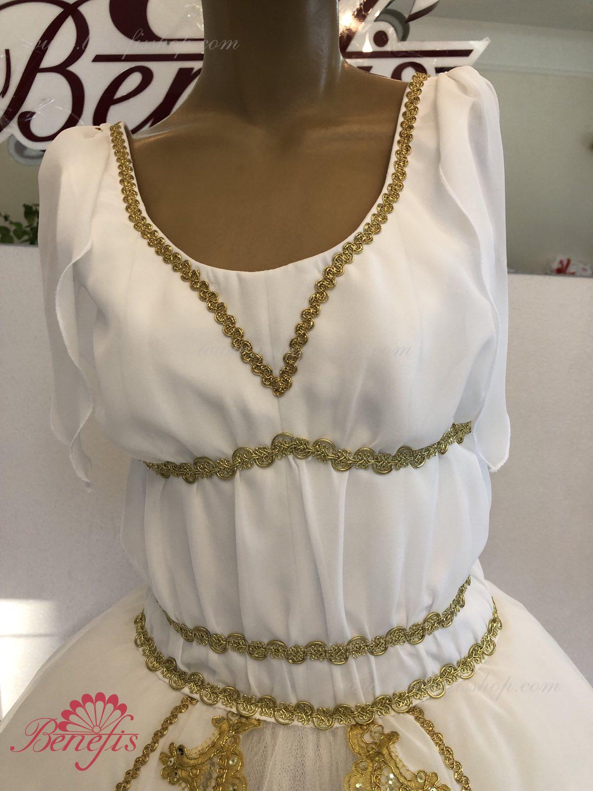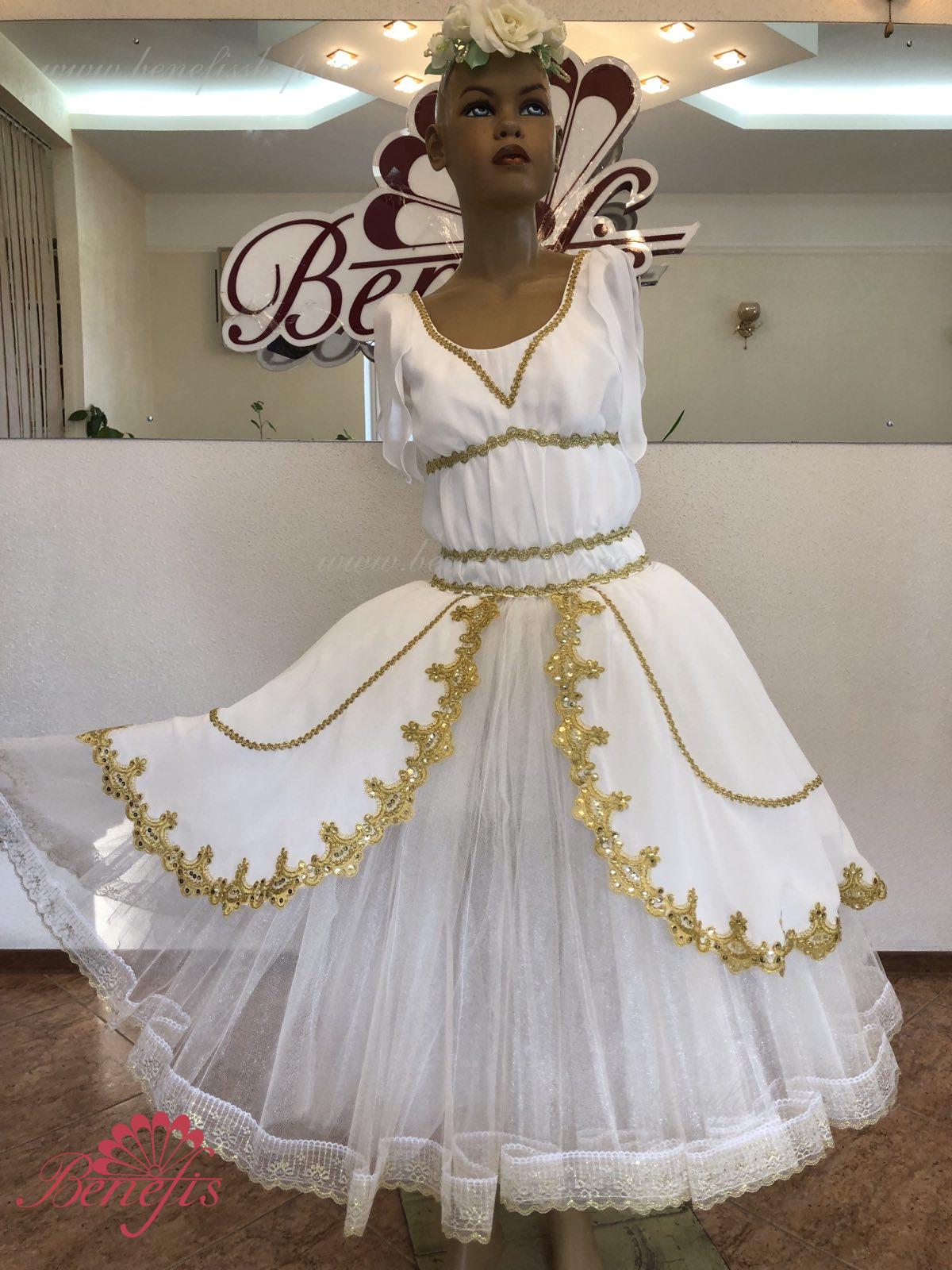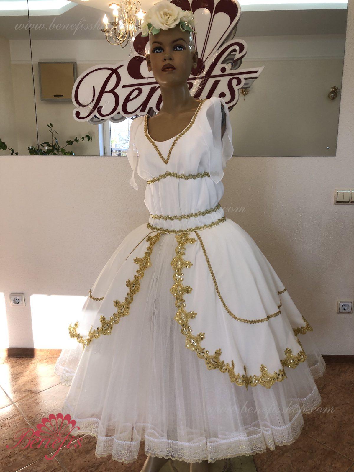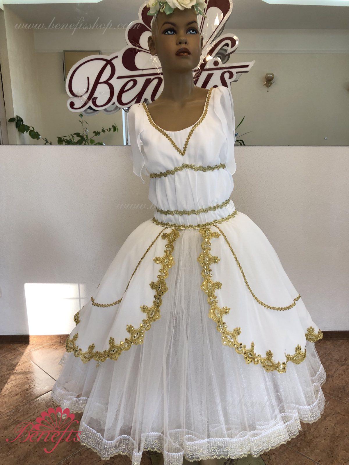 The pack is fastened at the back with 4 hooks and loops, which are sewn in the waist area. As the decor of the costume, applications in the form of exquisite patterns, as well as braid, sequins are used.