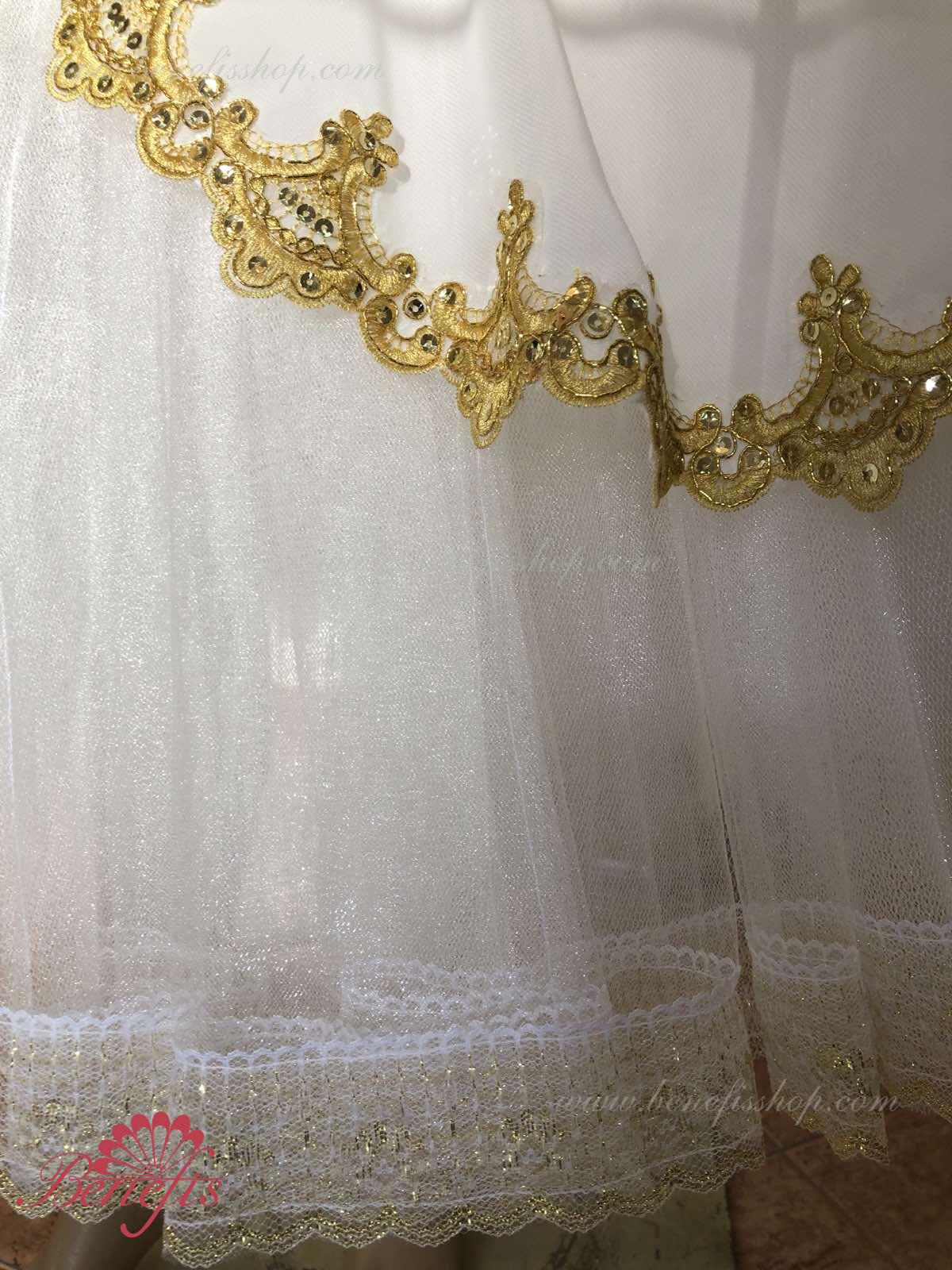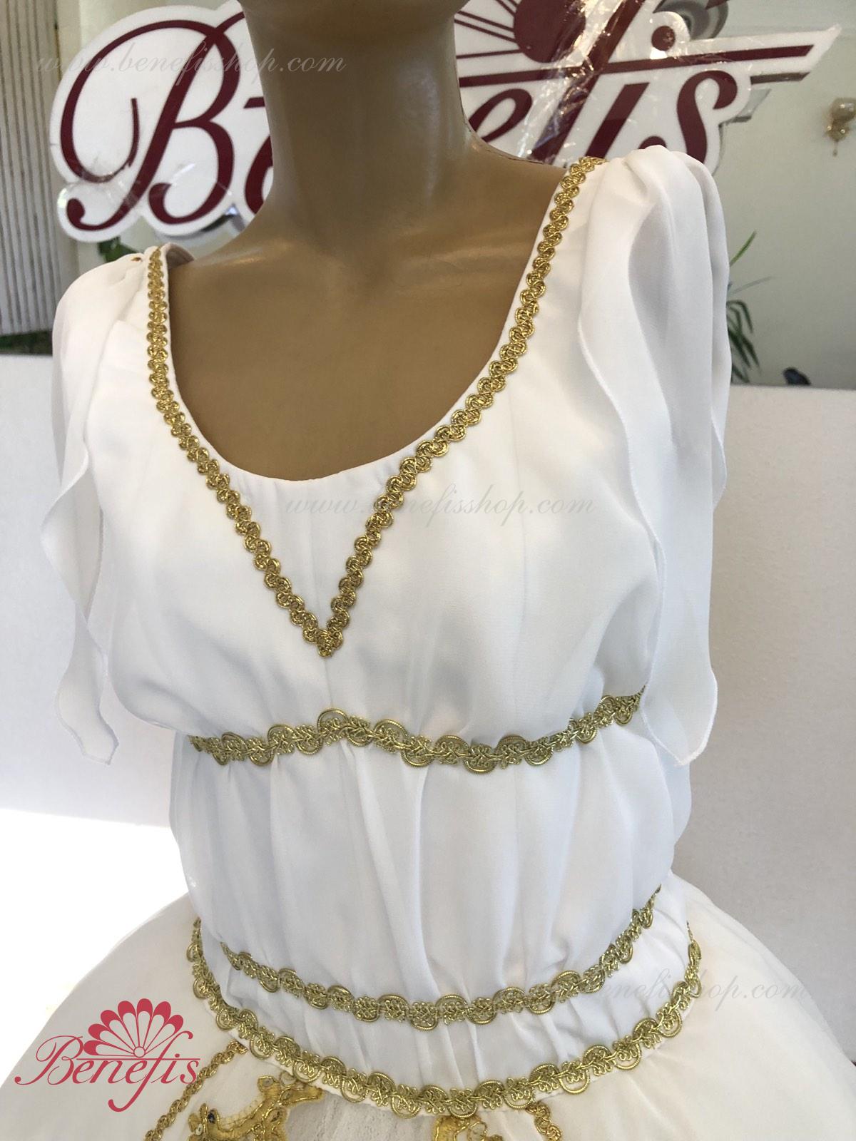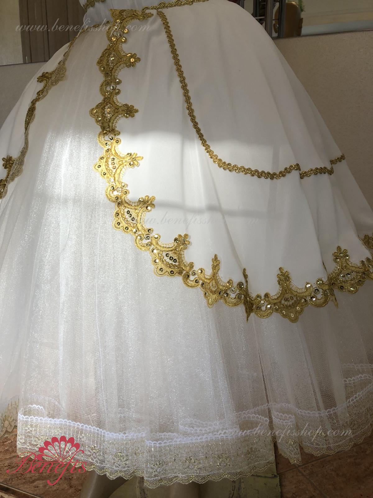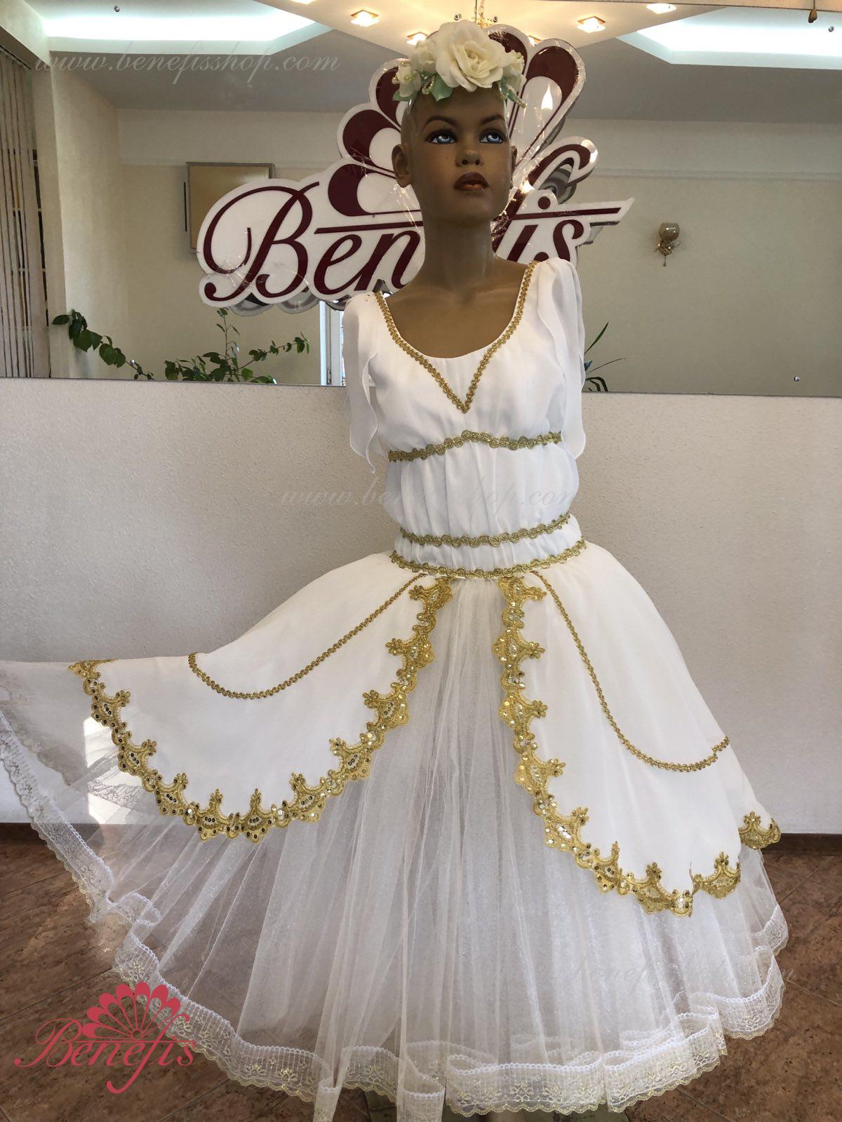 The pack is fastened at the back with 4 hooks and loops, which are sewn in the waist area. As the decor of the costume, applications in the form of exquisite patterns, as well as braid, sequins are used.