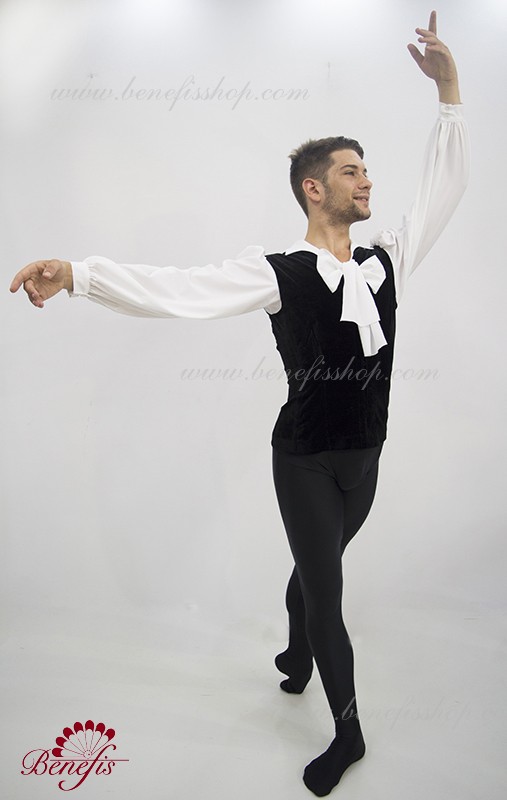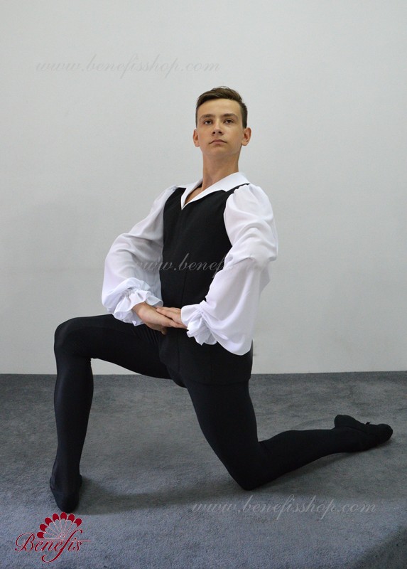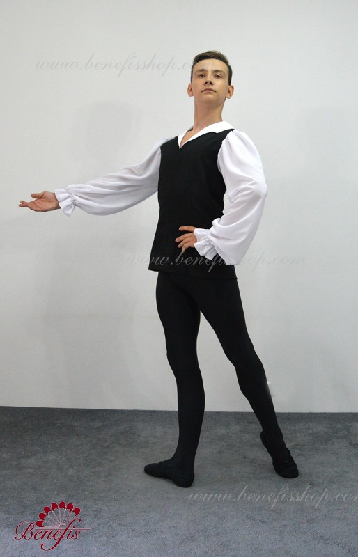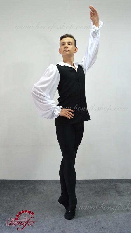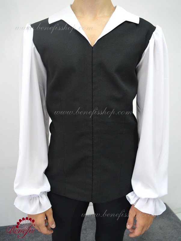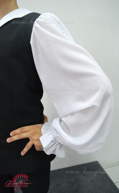This tunic is made in the form of a black shirt with white wide sleeves and a turndown collar.