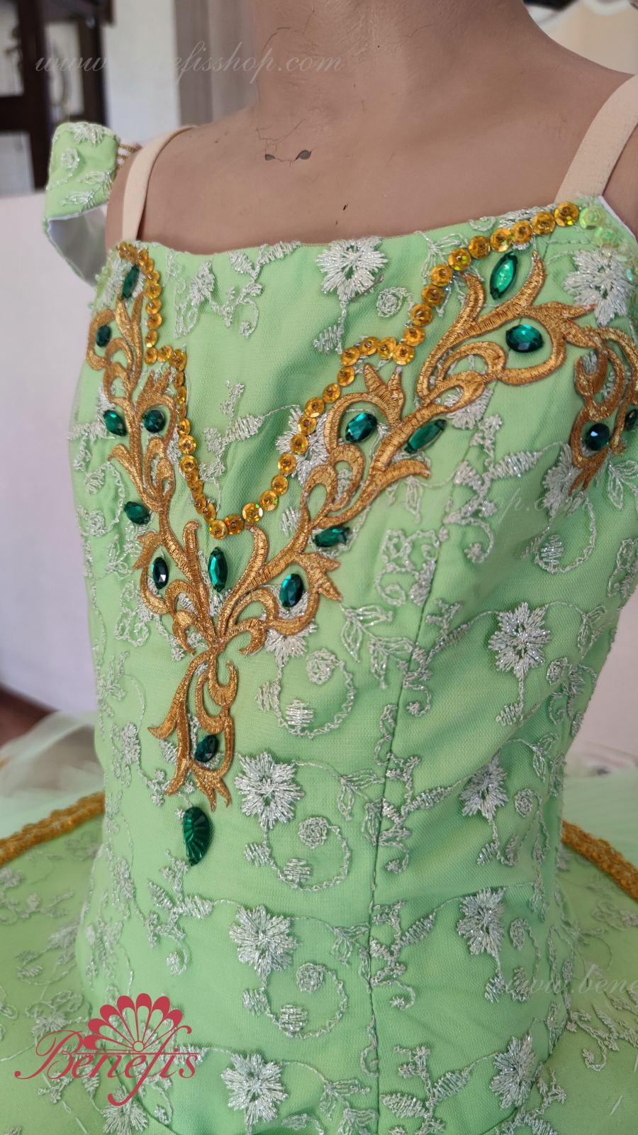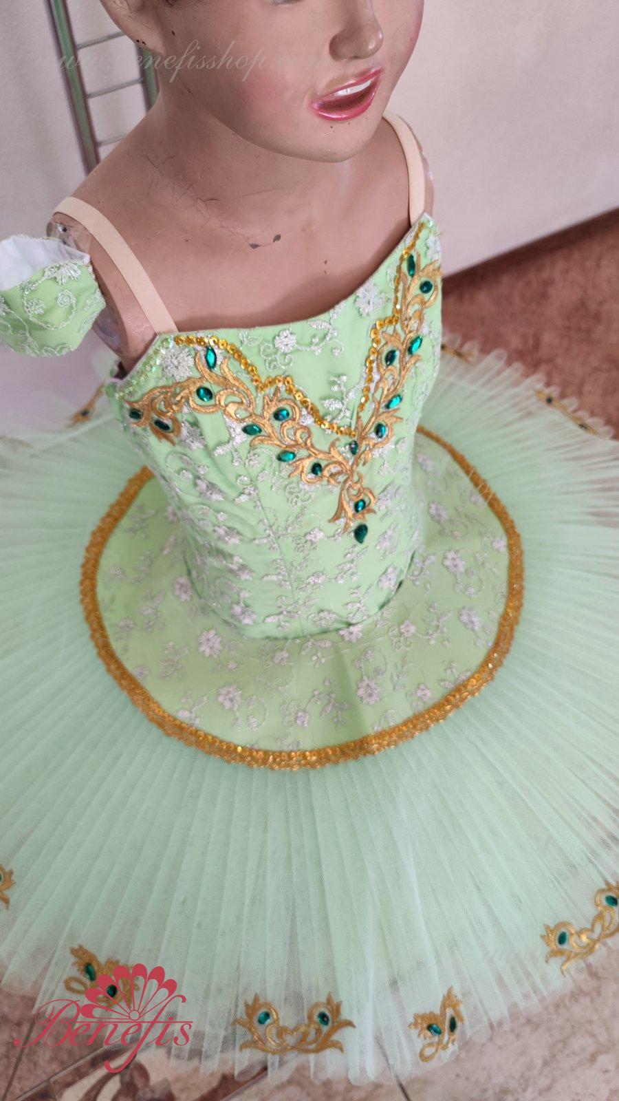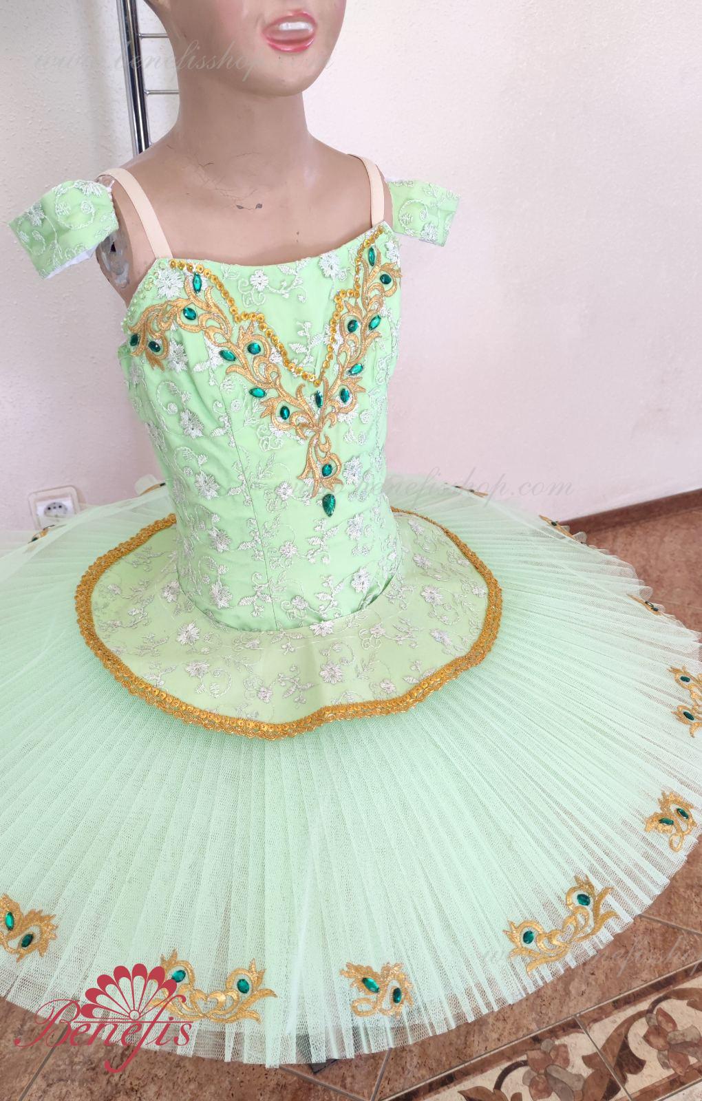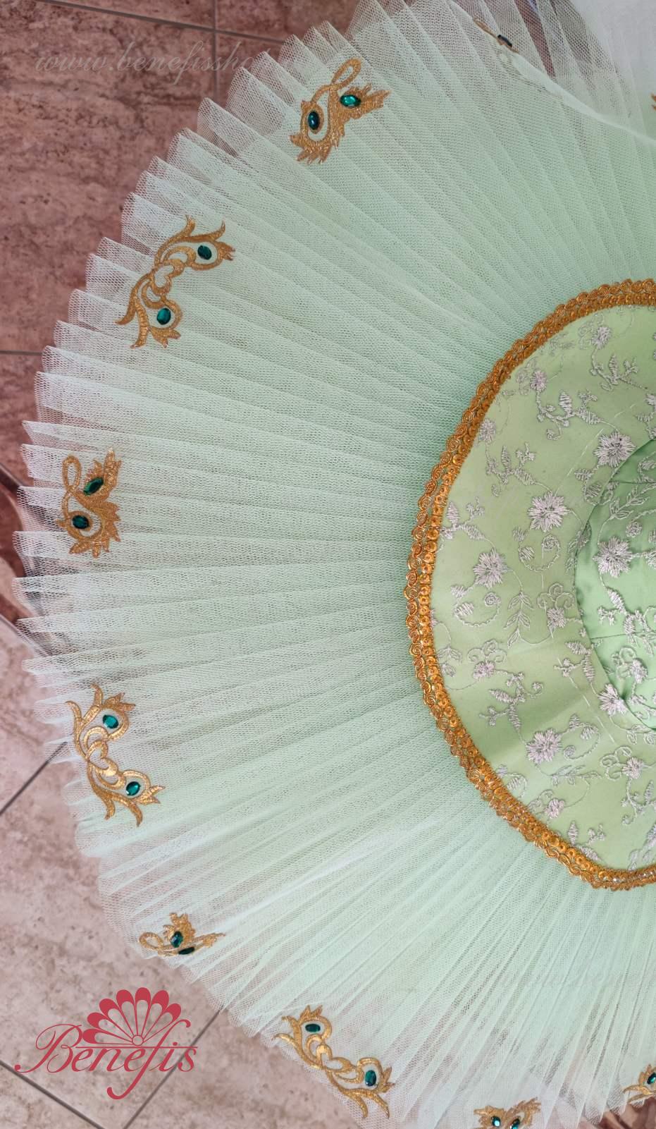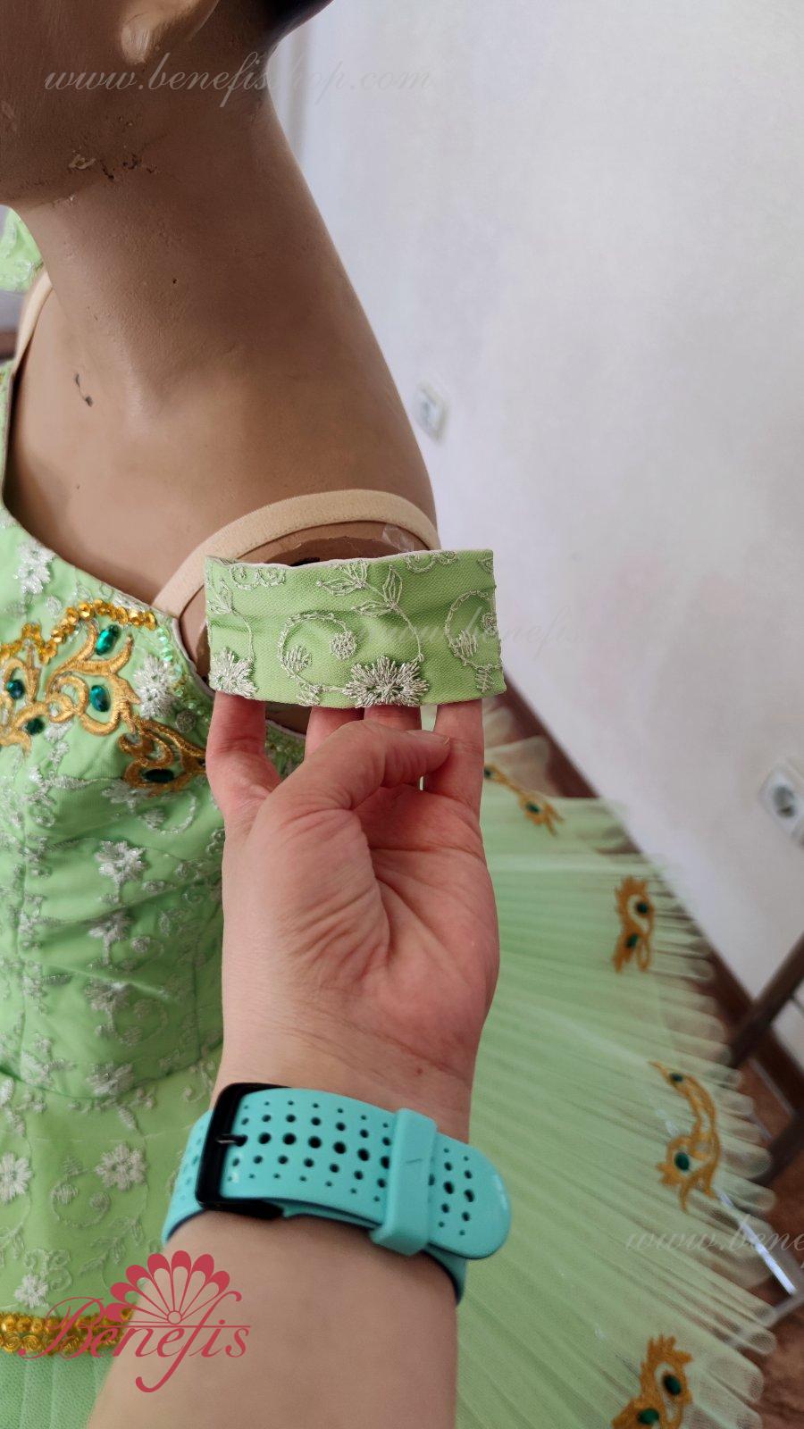 Details: costume. Bodice: the bodice is made of semi-elastic fabric (gabardine), the side details are made of b\f, duplicated with guipure. The bodice is fastened at the back in one row of hooks, webbing, inside the cord is used to adjust the size in the chest area. The base is 5-ply on biflex briefs, the upper hard bottom is soft tulle.Decor: appliques, rhinestones, sequins.