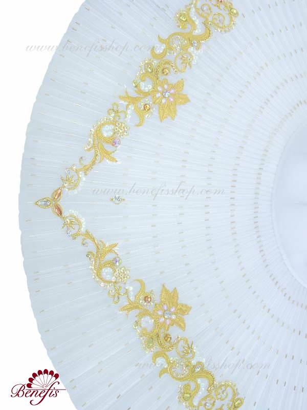 The decor on the top layer of the skirt is carried out in the form of a golden circle with a richly embroidered angle in front.