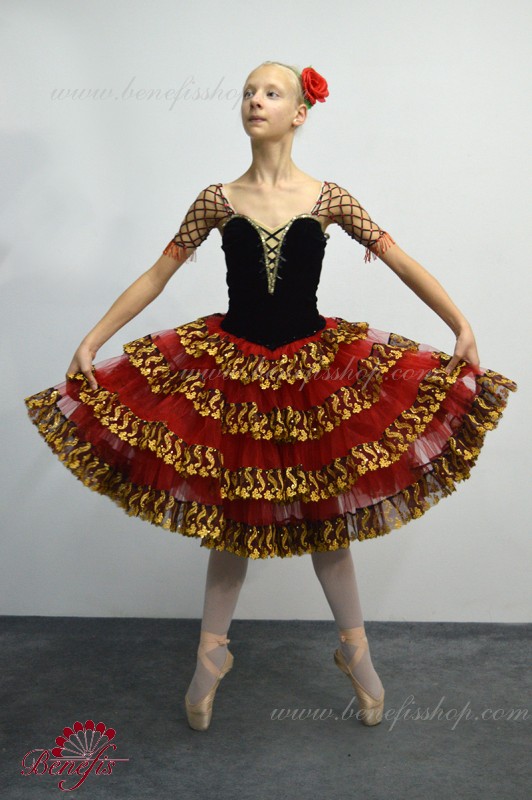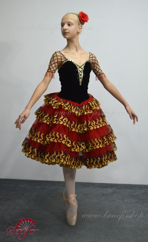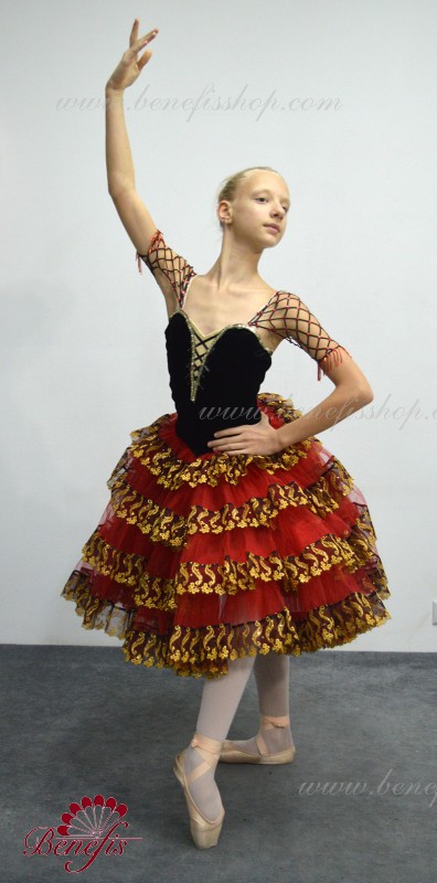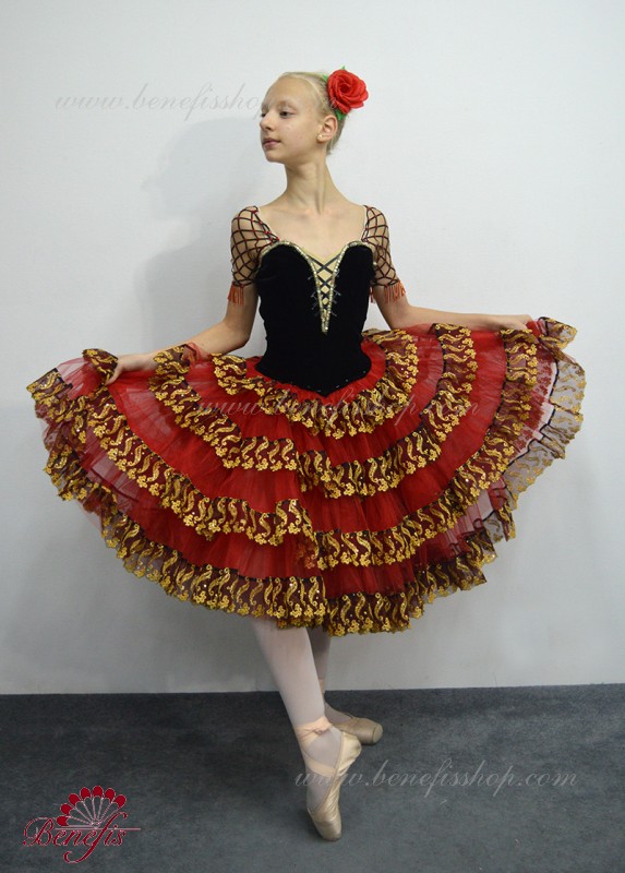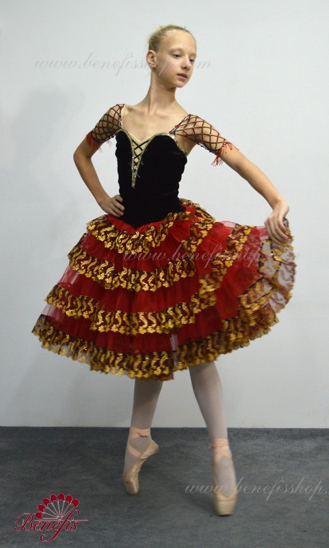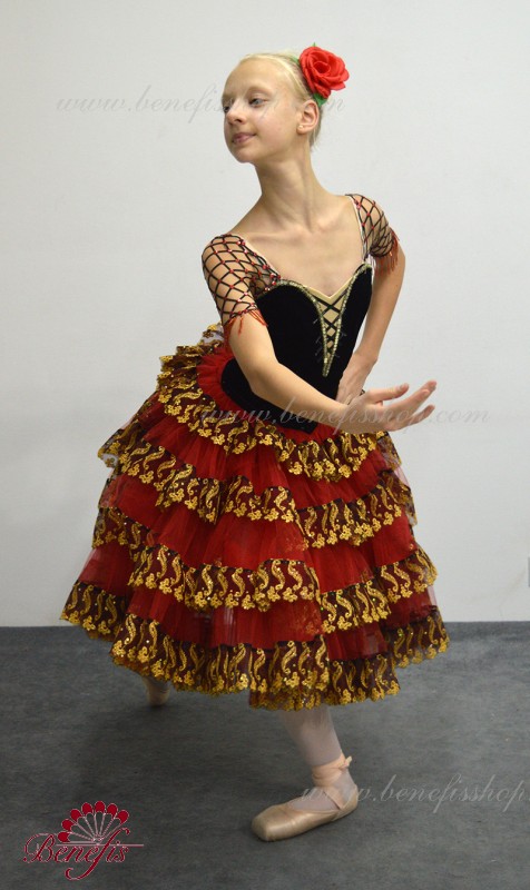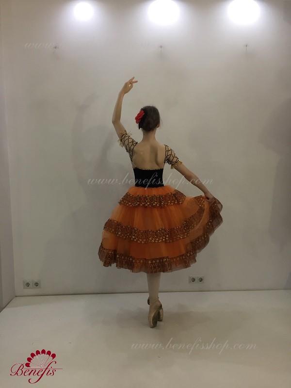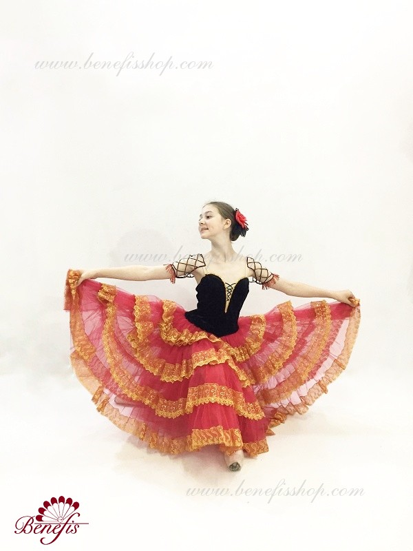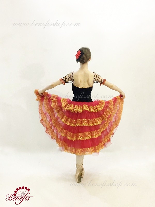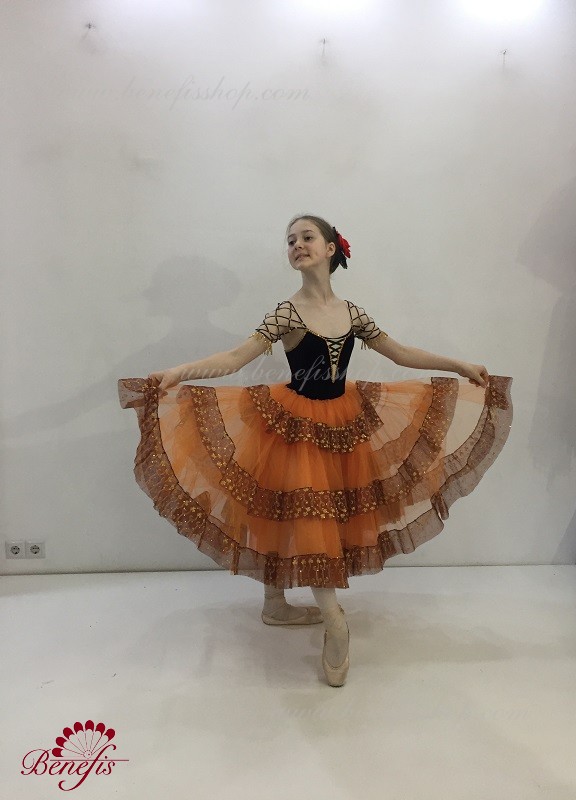 The skirt is made of 5 layers of tulle. Upper shuttlecock consists from 4 different frills with different length. On the edge is guipure lace.