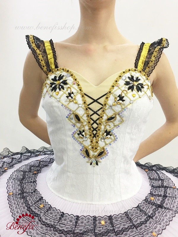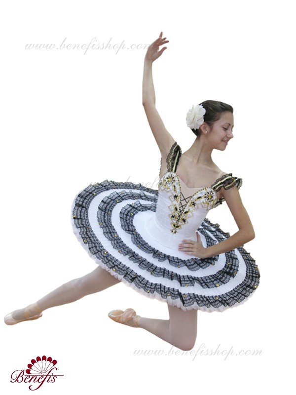 It is a professional stage costume, which is made on the basis of the professional basic tutu # T 0001B (see section “Basic tutus”).
