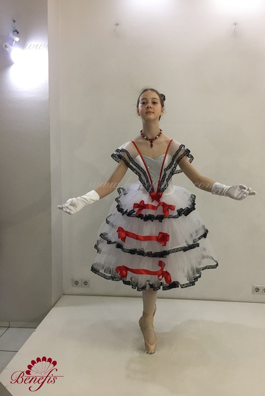Details: dress, gloves, flower.You can order beads for an additional fee. Made of tulle, braid, satin. Decor: sequins.
