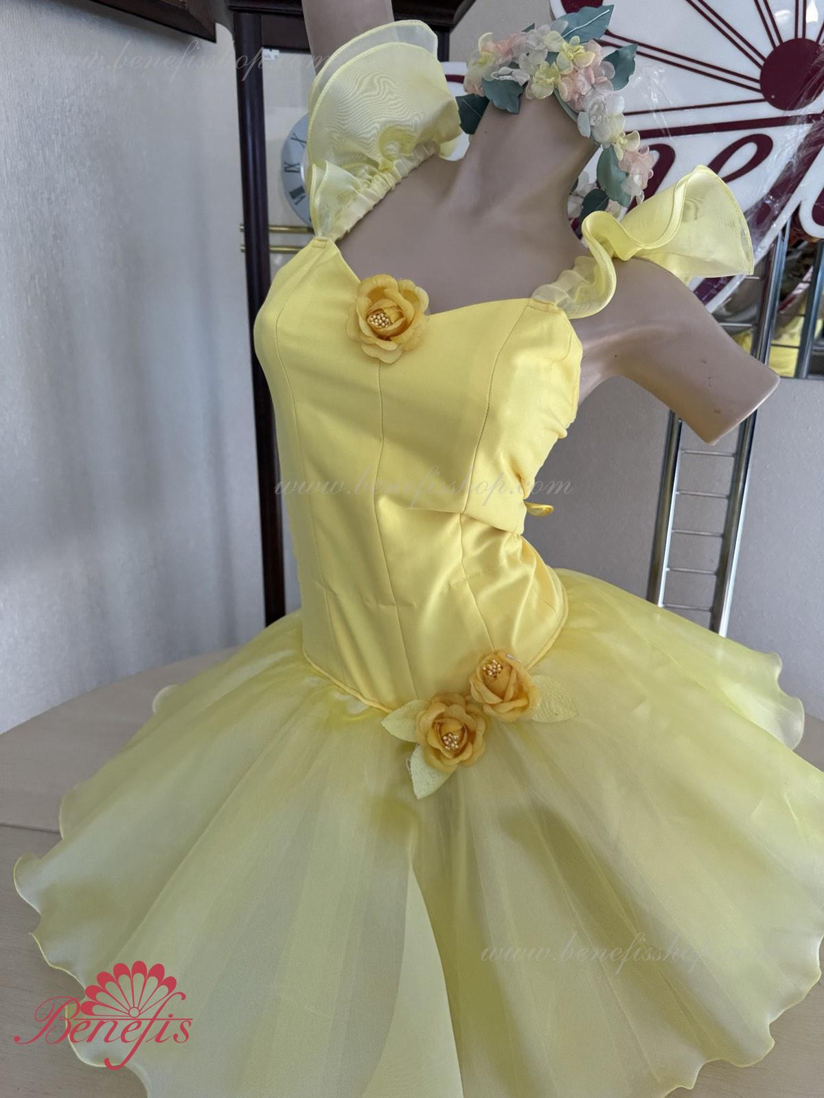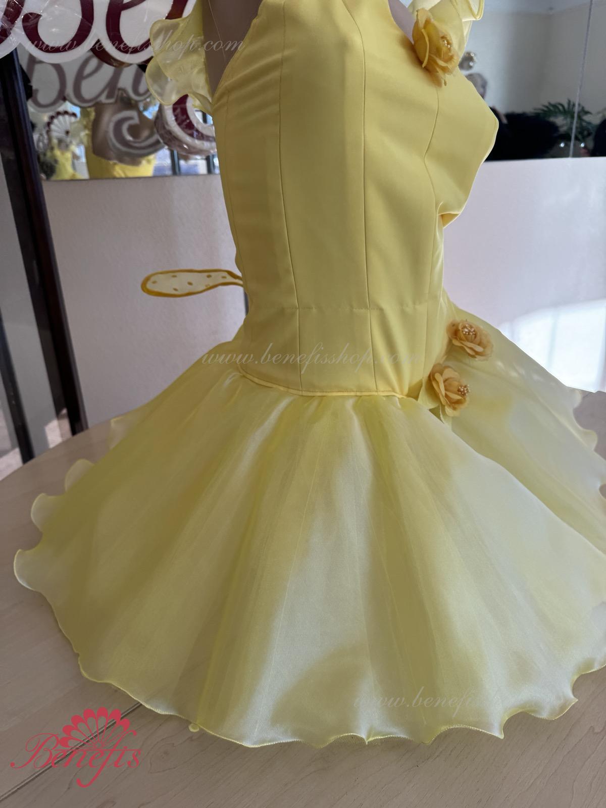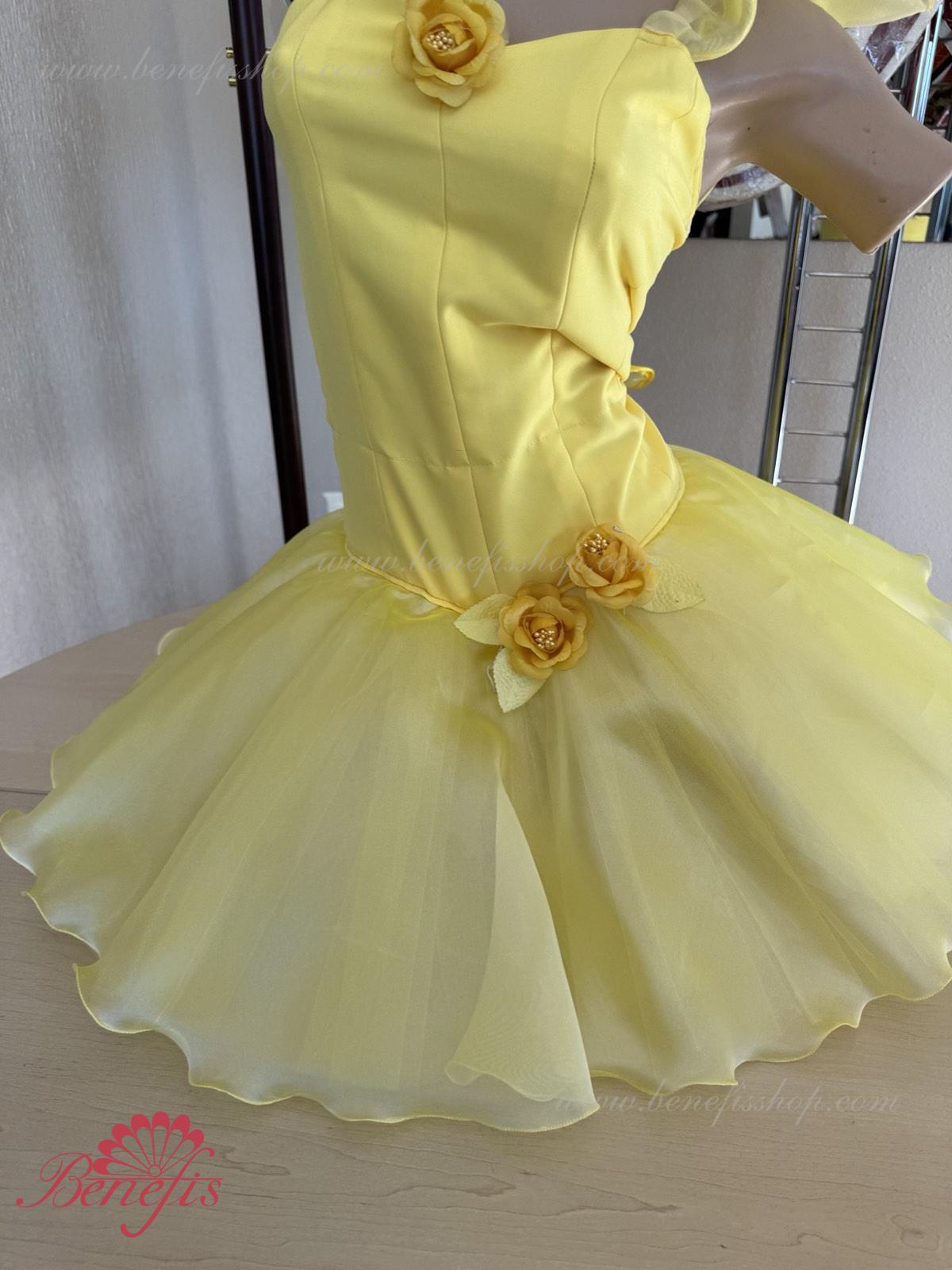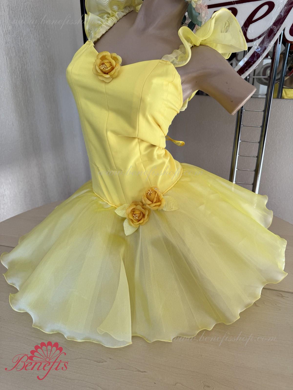 The short skirt of tulle is covered with the one layer of thin chiffon. The bodice is made of semi elastic fabric at the edge has a V-like form. The costume also comes with sequined wings, which are worn separately.