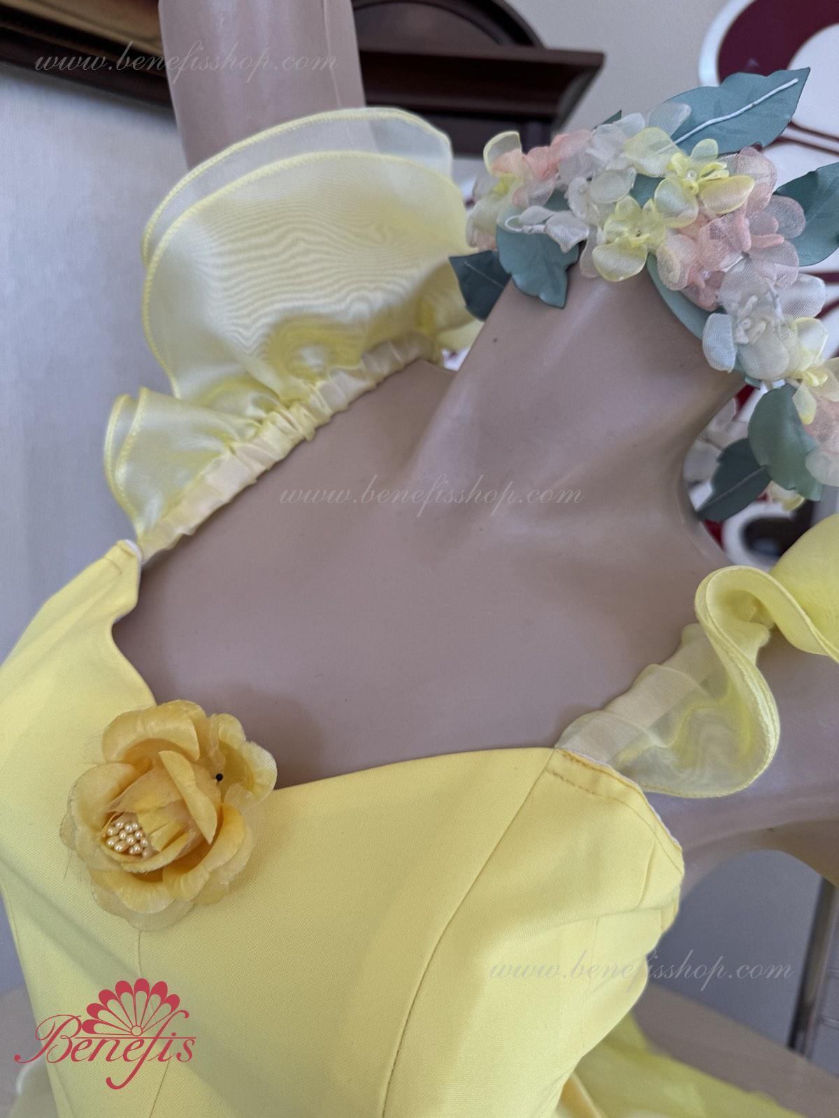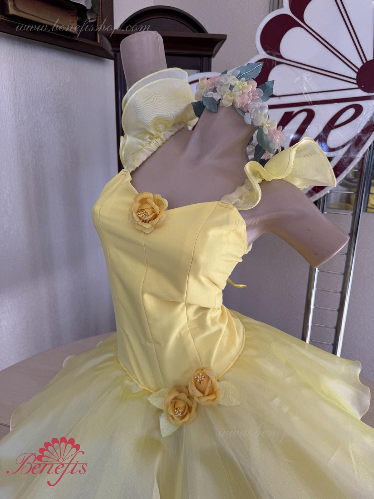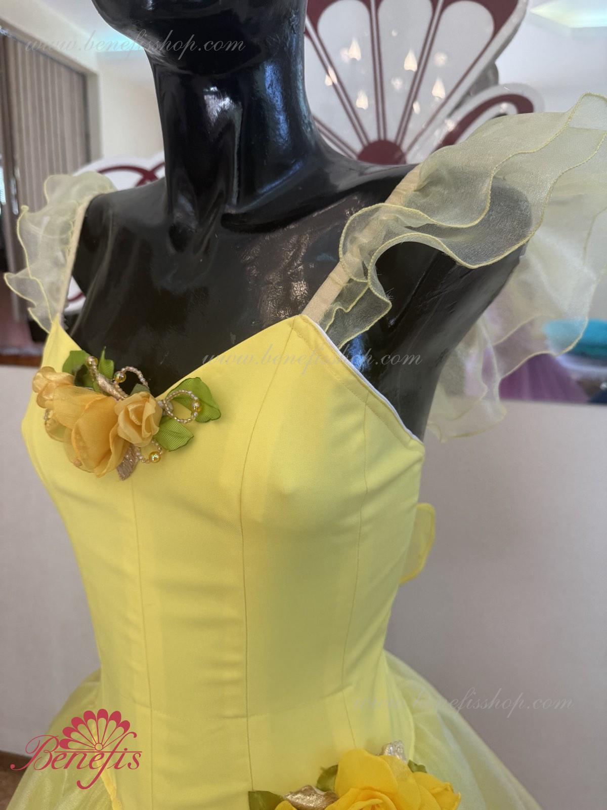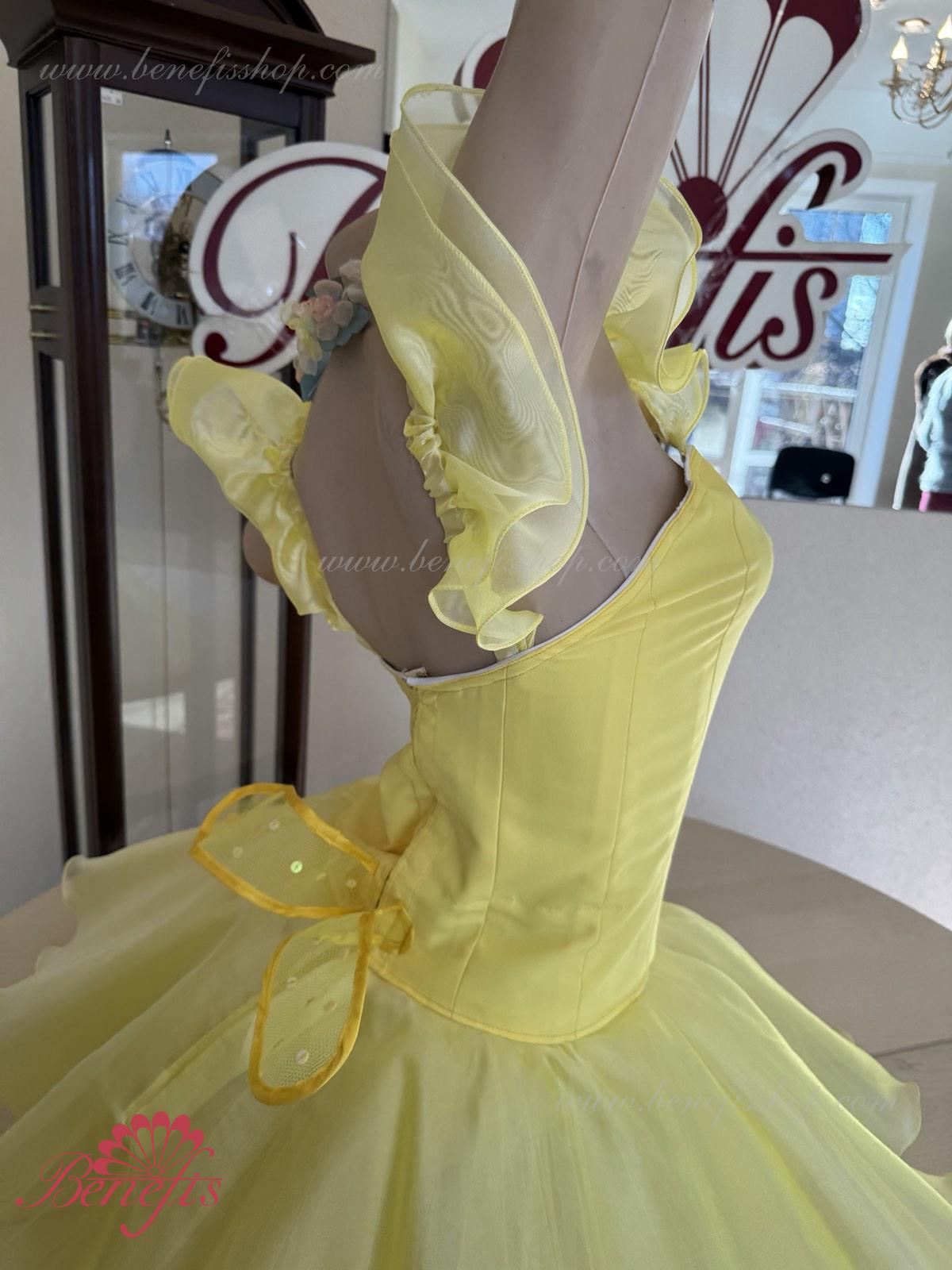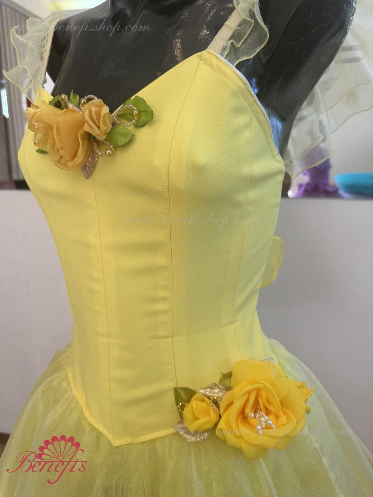 The short skirt of tulle is covered with the one layer of thin chiffon. The bodice is made of semi elastic fabric at the edge has a V-like form. The costume also comes with sequined wings, which are worn separately.