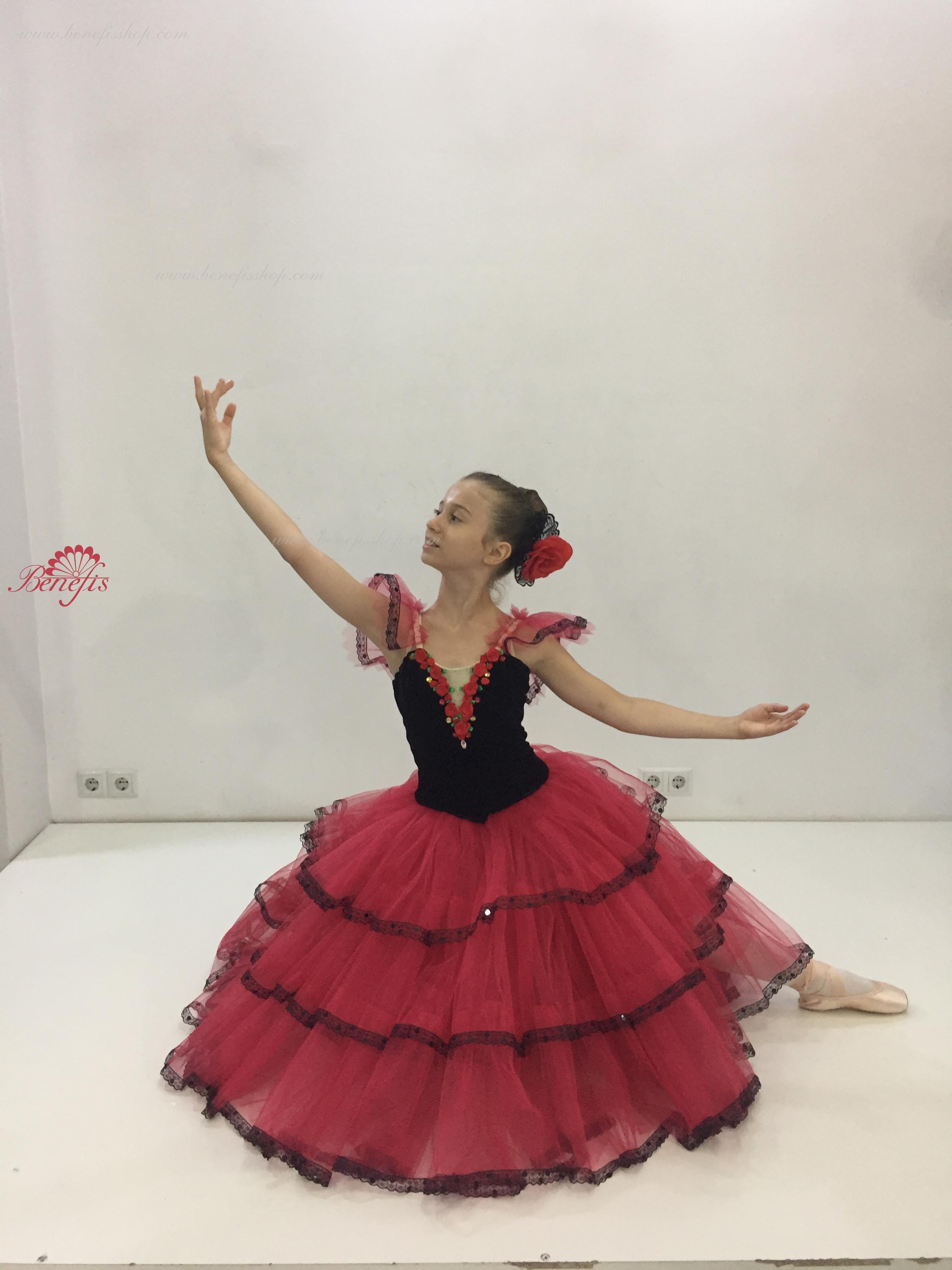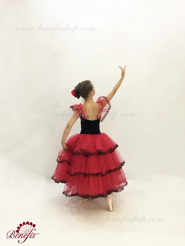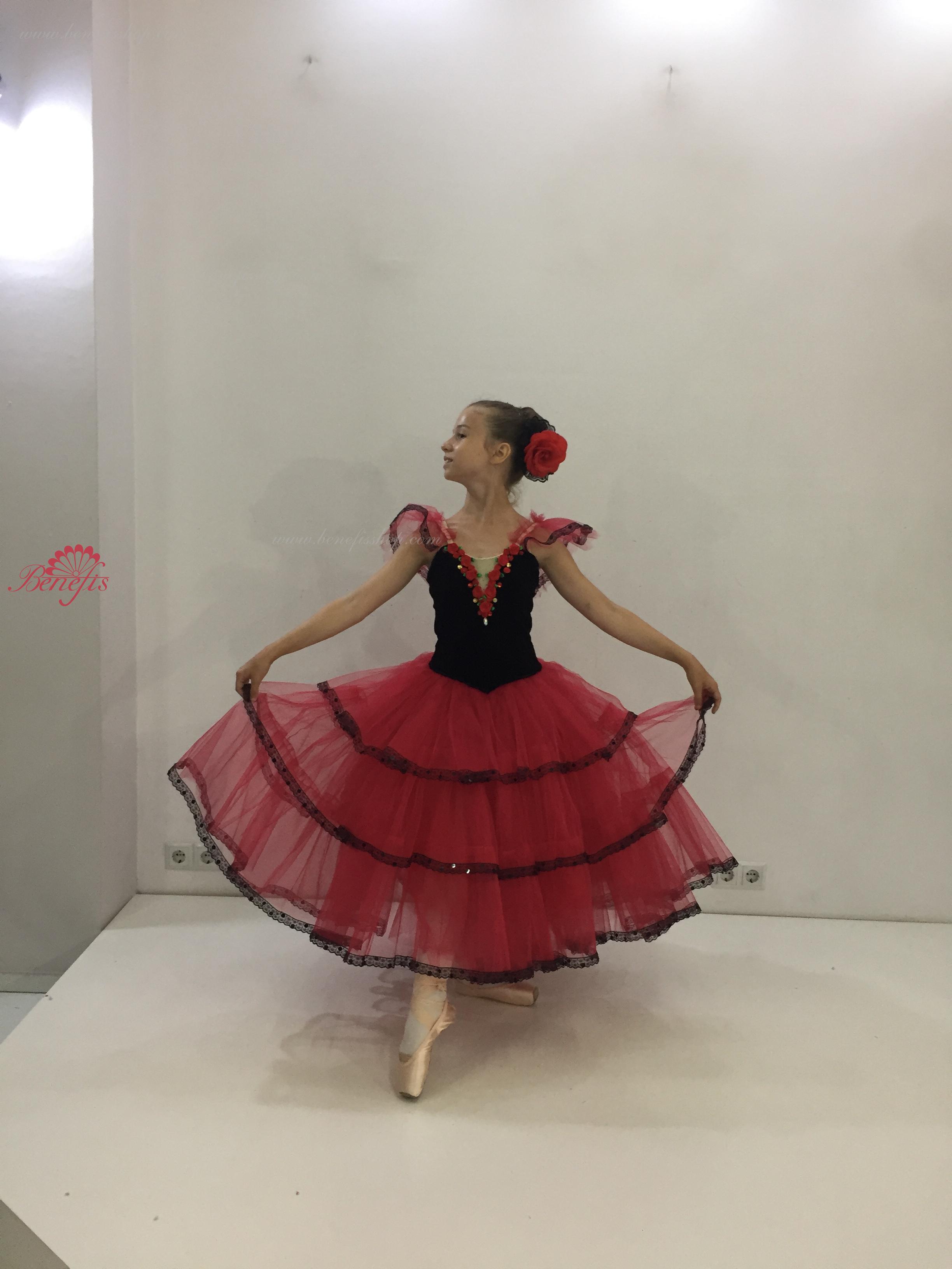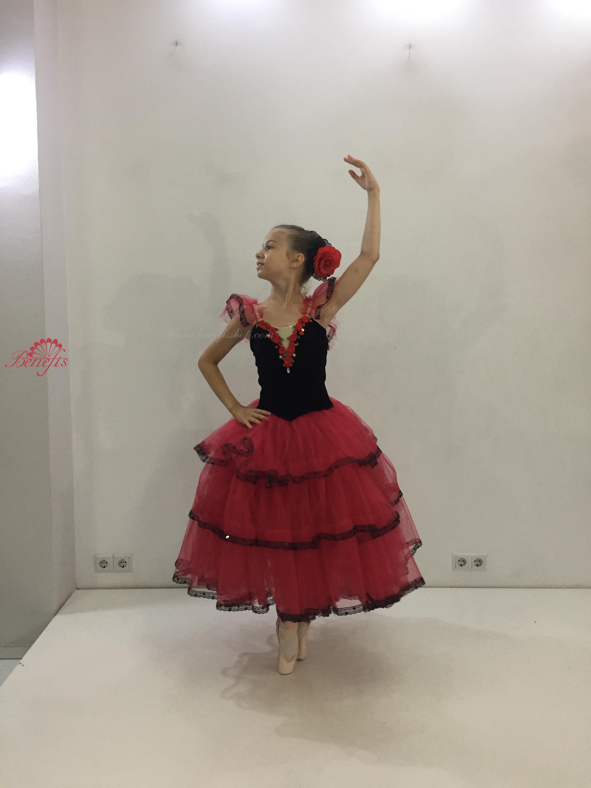 This professional ballet stage costume is made on the basis of a professional tutu T0009. The bodice, with elastic straps and a body insert on the chest, is made of dense semi-elastic fabric.