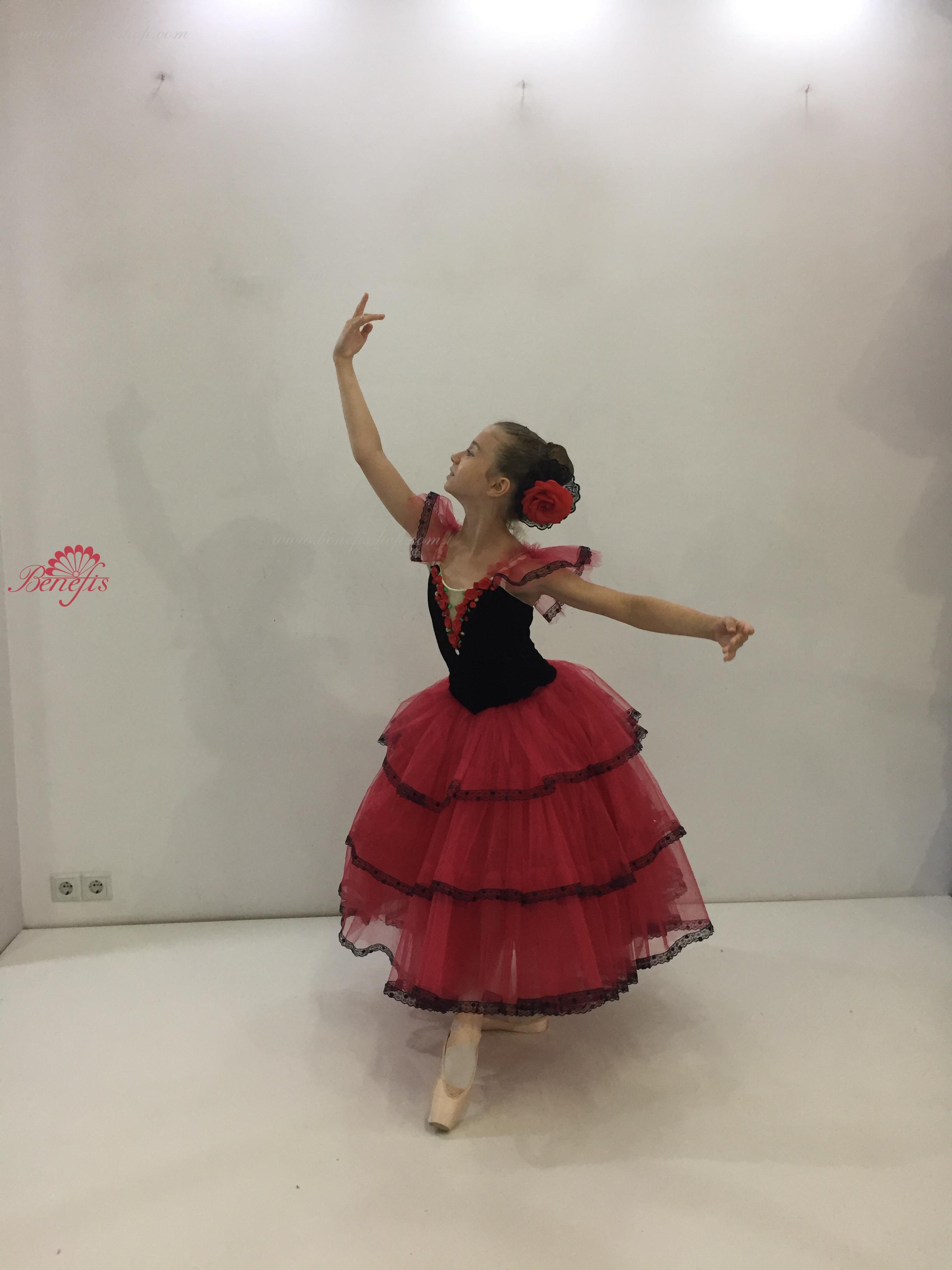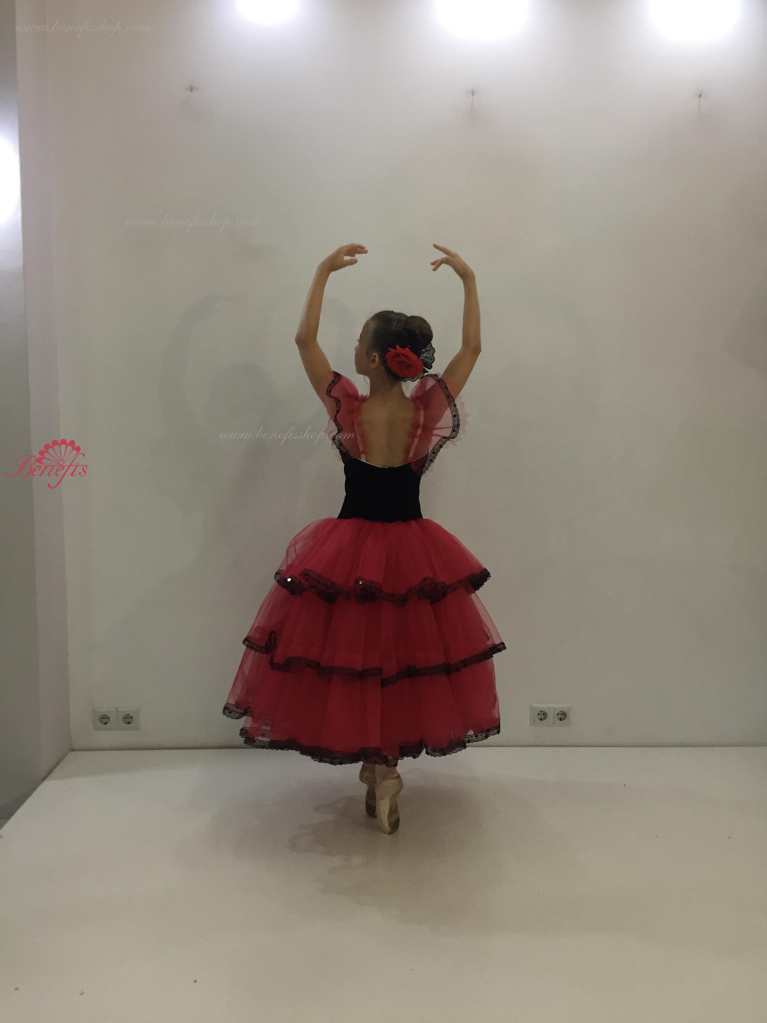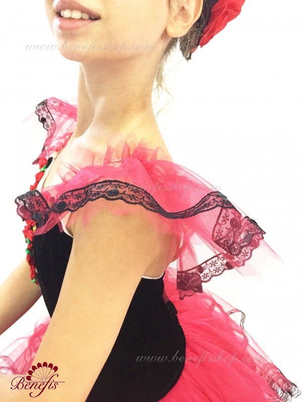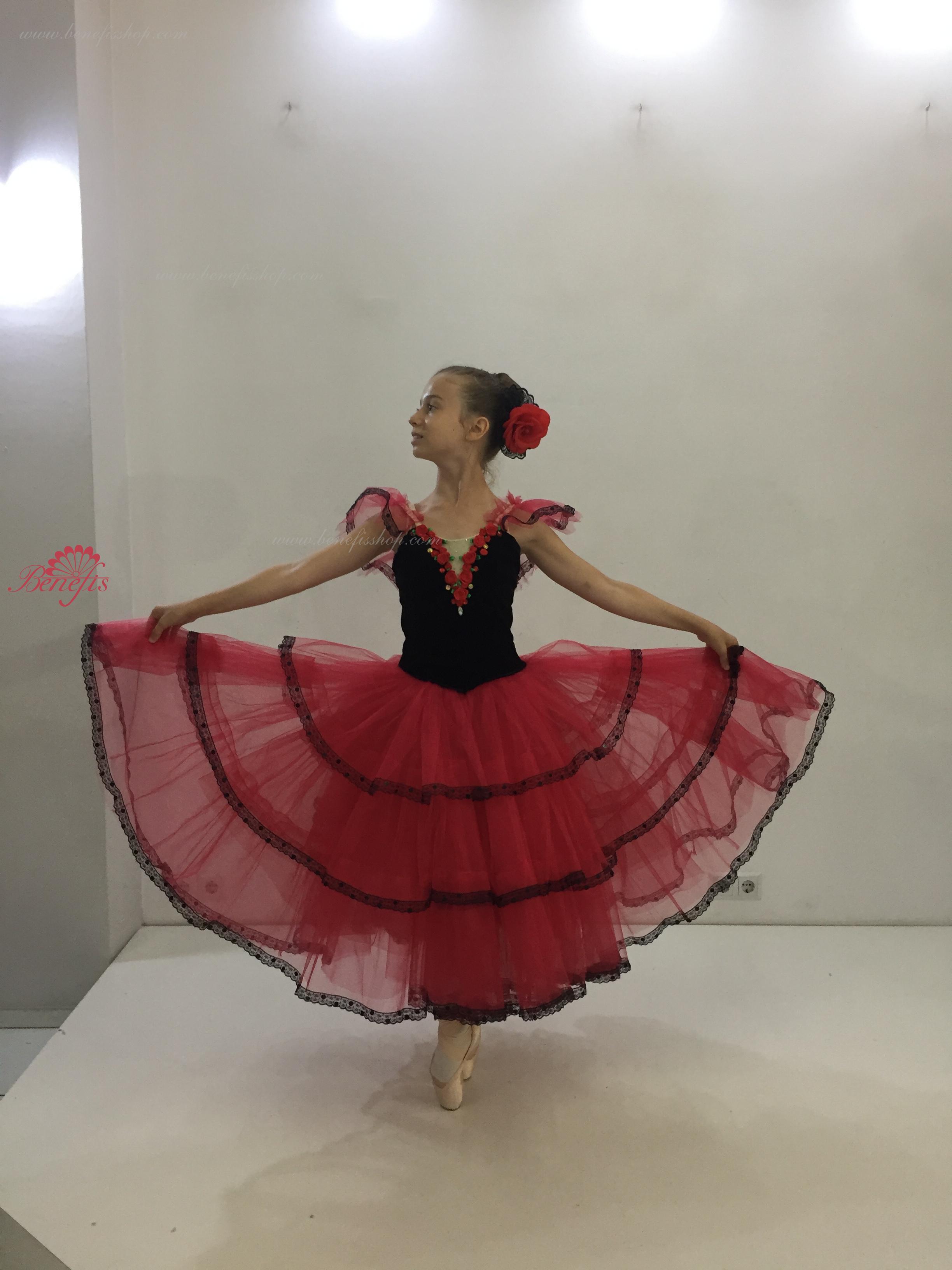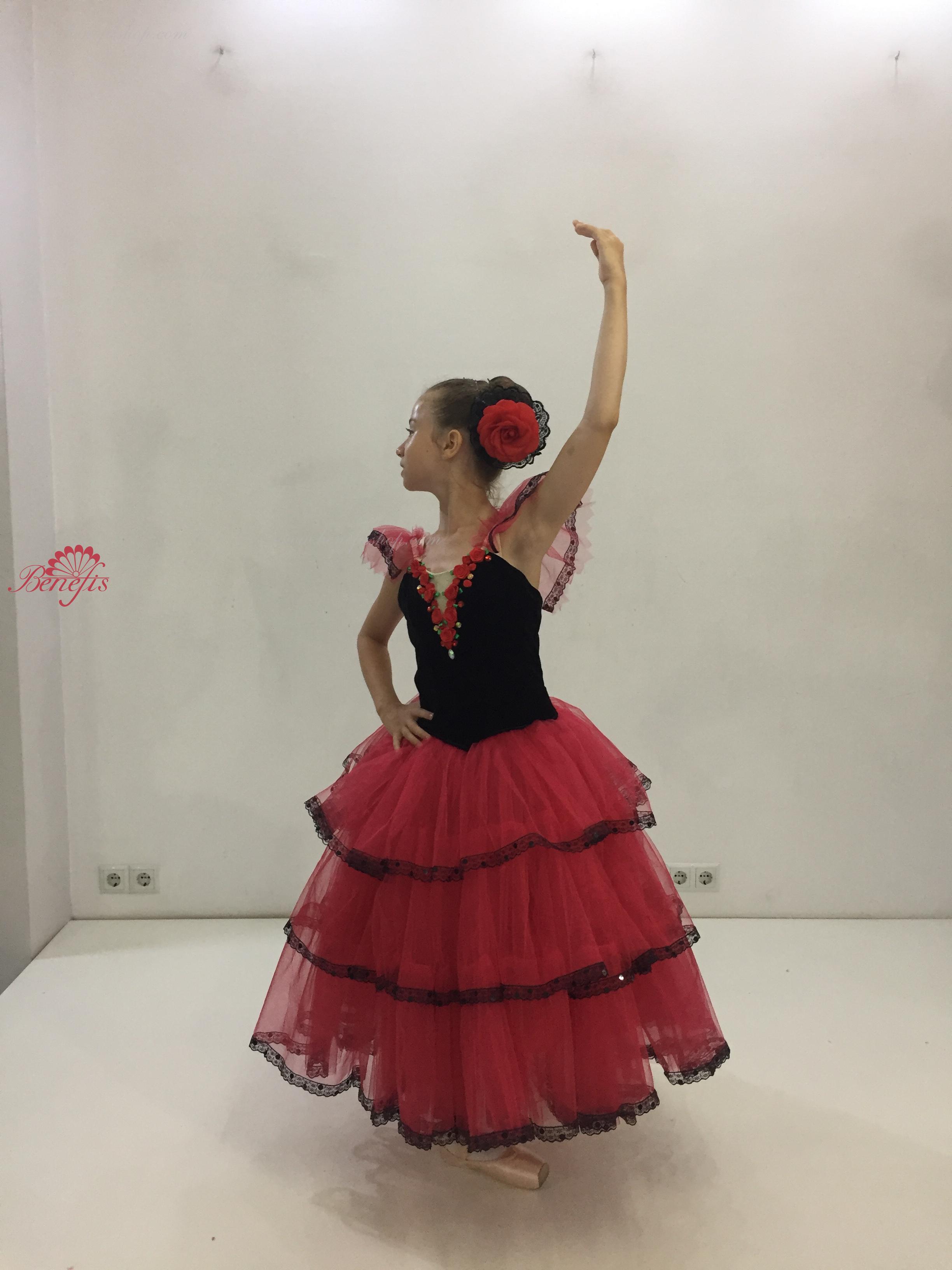 This professional ballet stage costume is made on the basis of a professional tutu T0009. The bodice, with elastic straps and a body insert on the chest, is made of dense semi-elastic fabric.