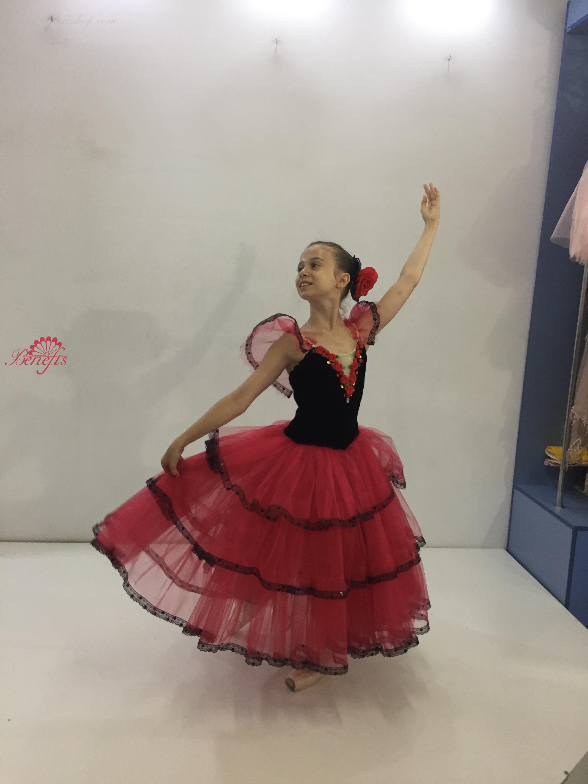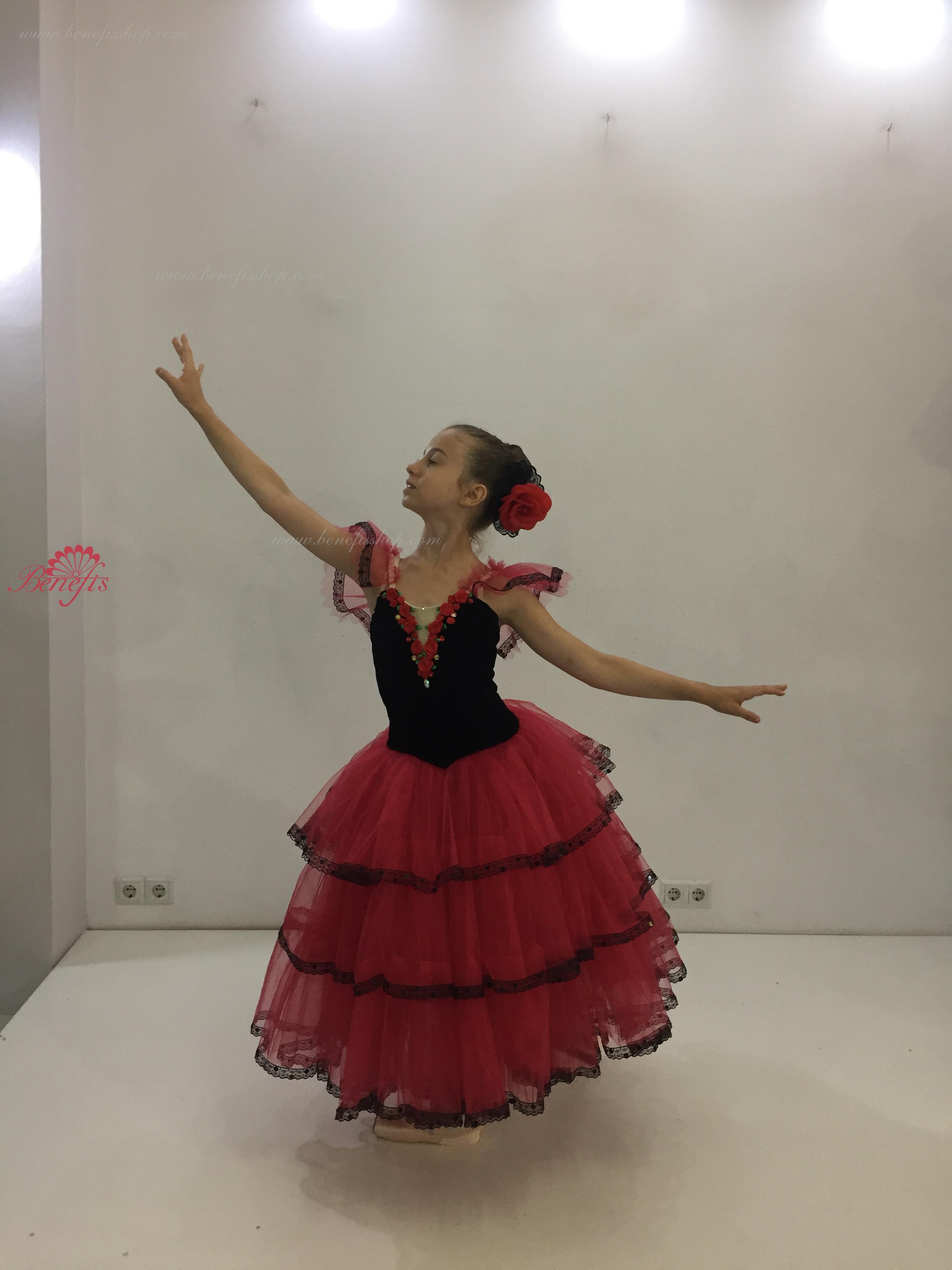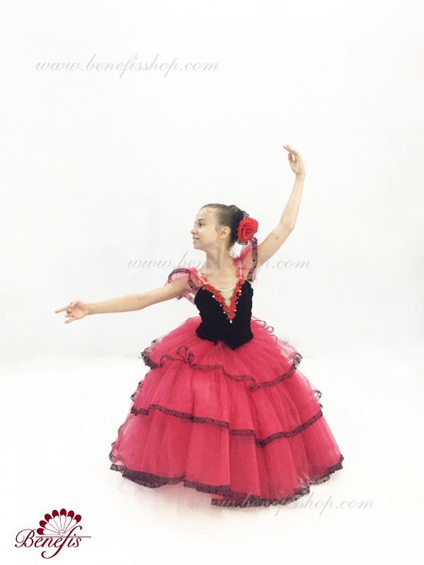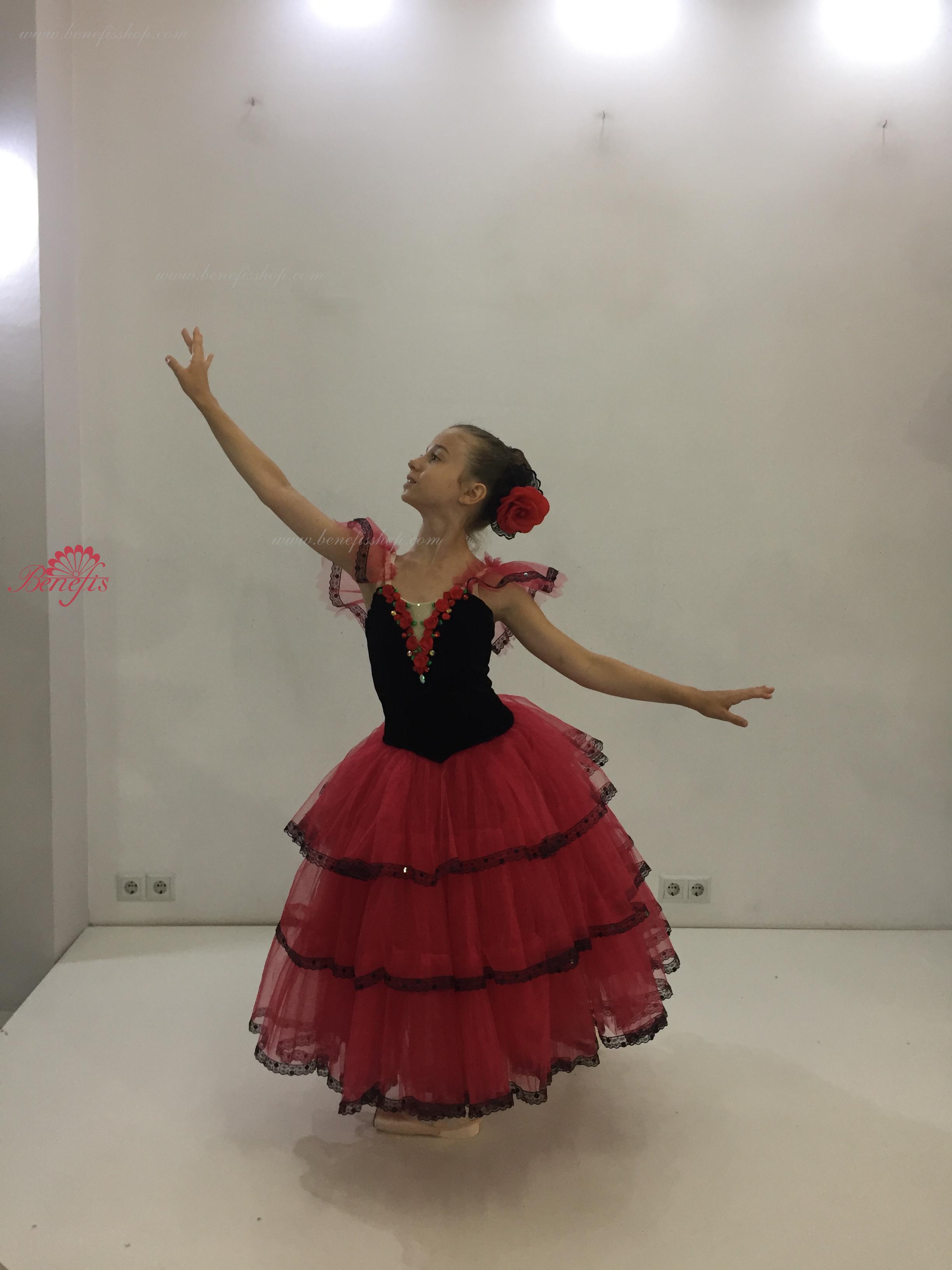 This professional ballet stage costume is made on the basis of a professional tutu T0009. The bodice, with elastic straps and a body insert on the chest, is made of dense semi-elastic fabric.