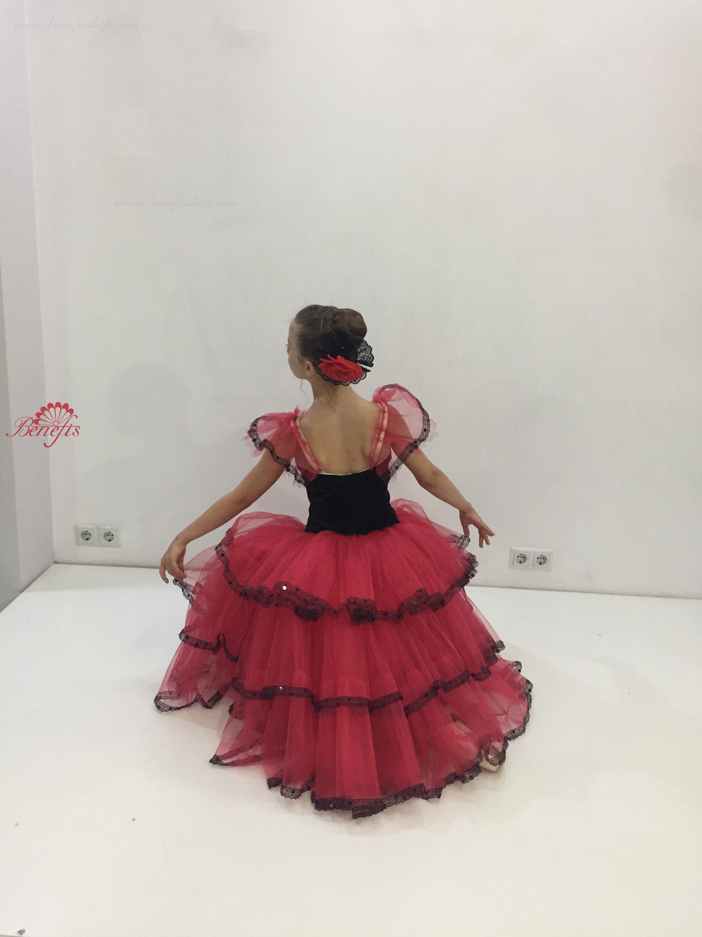 The bodice is fastened with hooks in two rows for convenient adjustment, the inner cord serves to tighten the bodice in the chest area. The wide Spanish-style skirt consists of 3 layers, it is made of hard and soft tulle and is planted on underpants. The frills on the skirt and the edges of the armbands are trimmed with lace.