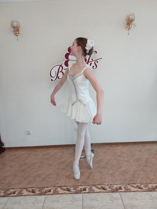 Details: suit. Satin or taffeta bodice on the matte side, two layers of chiffon skirt.