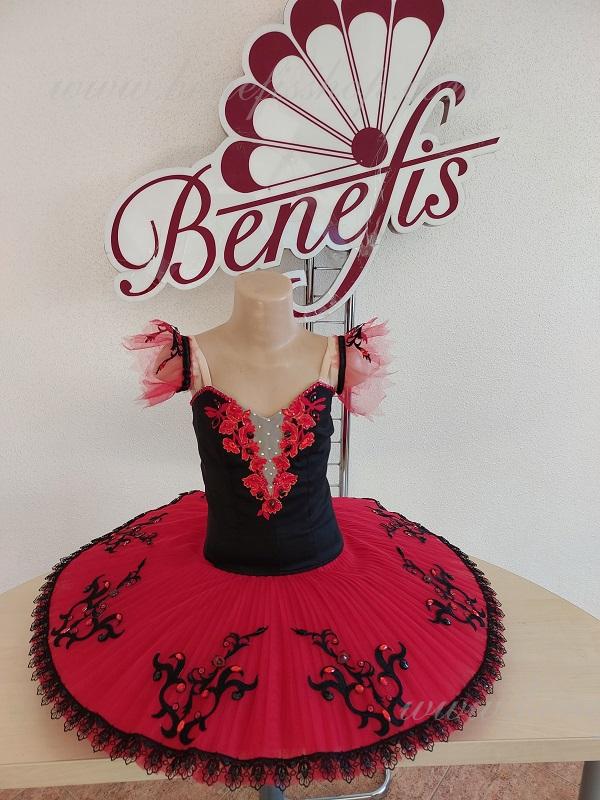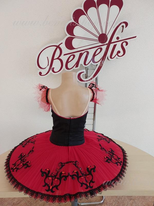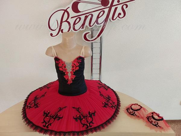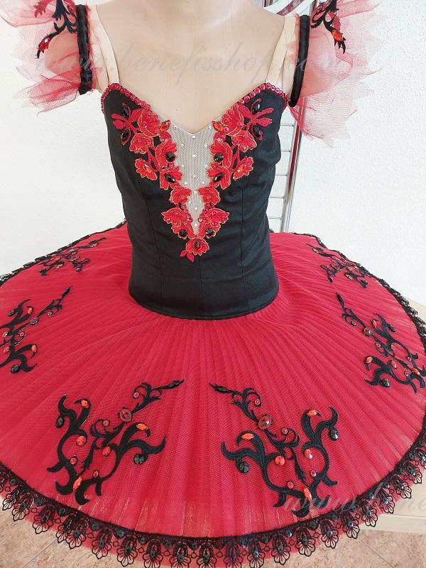 The combination of contrast colors, dark bodice and red tutu impart an exquisite and refined aspect to the costume.