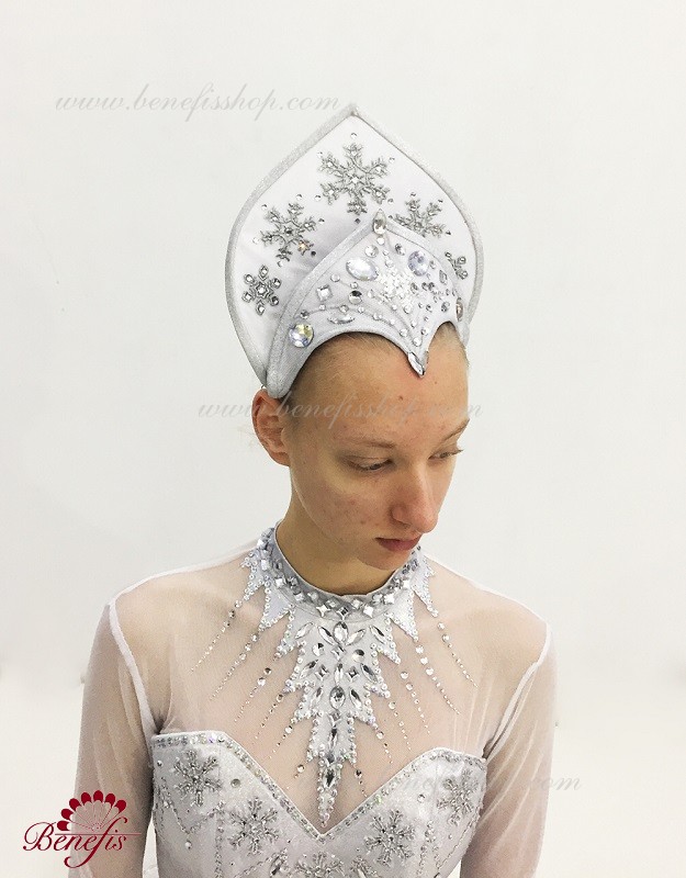Details: headpiece. This headpiece goes well with the F0449 costume and is attached to the hair with invisible hairpin. Based on supplex, embroidered appliques decorated with rhinestones and stones are used as a decoration. It can be made in any color at the customer's choice.