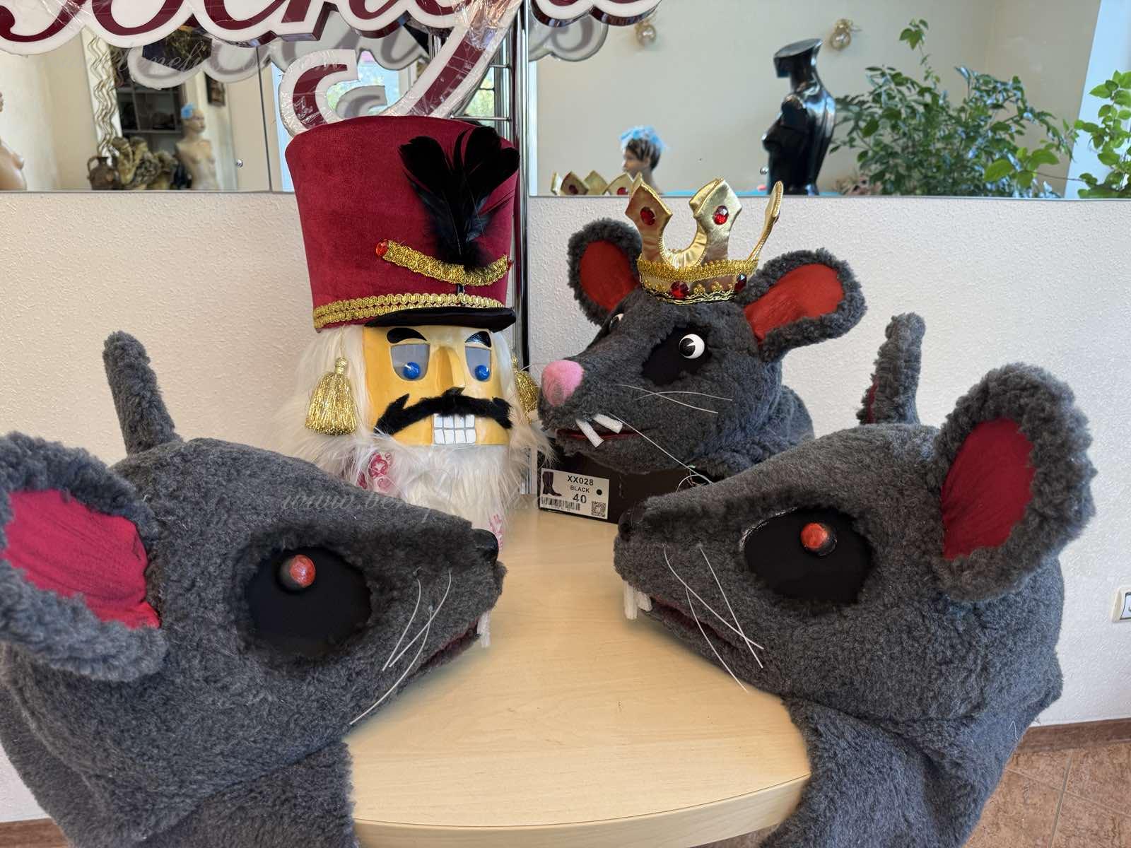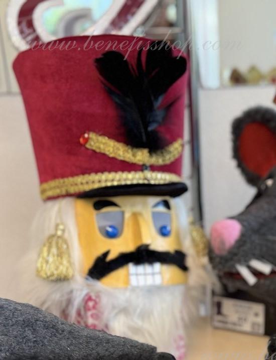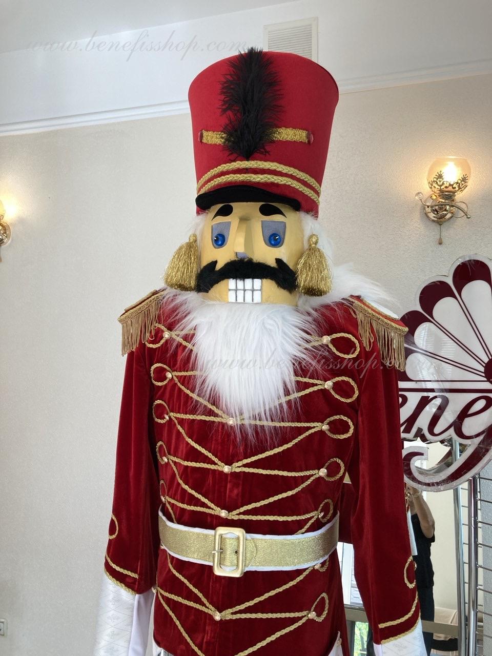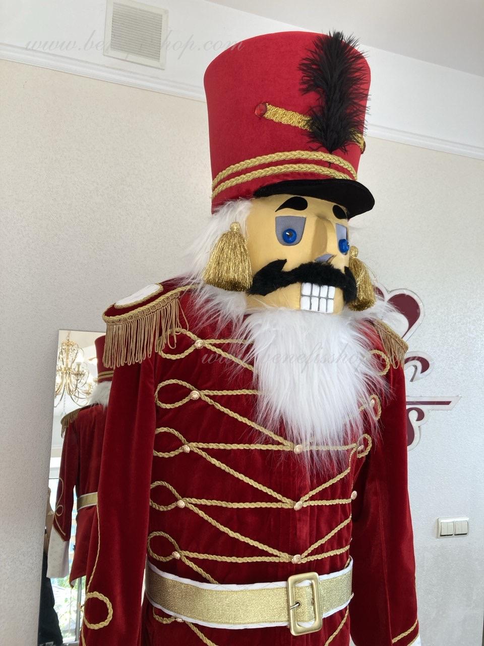 This headdress is designed for the role of the Prince in the ballet The Nutcracker. The beautiful headdress is made of papier-mâché, the eyes are cut out so conveniently that the actor can freely see the stage from the inside during the dance. The hat is made of foam rubber covered with fabric. This mask has a special fastening inside so that the mask stays well on the actor's head.