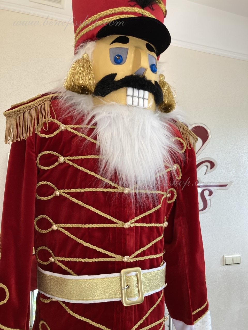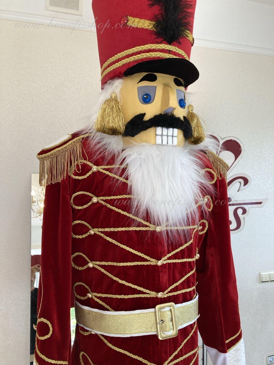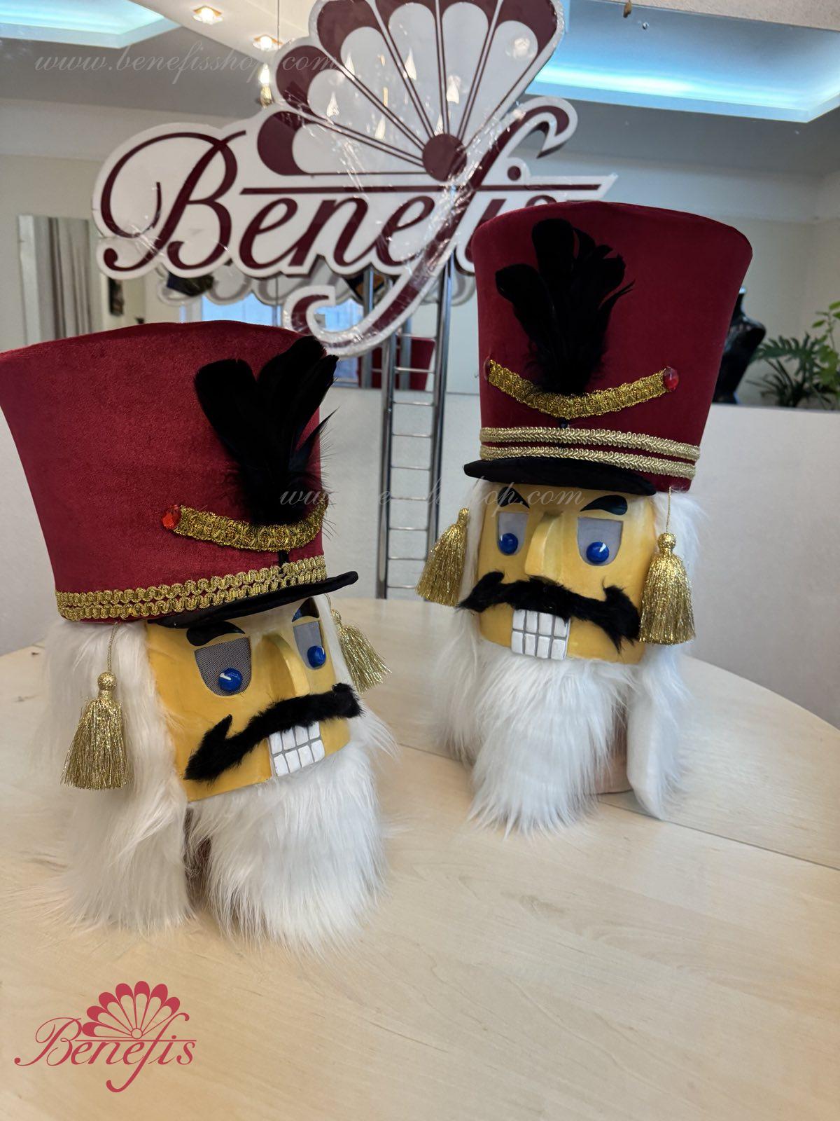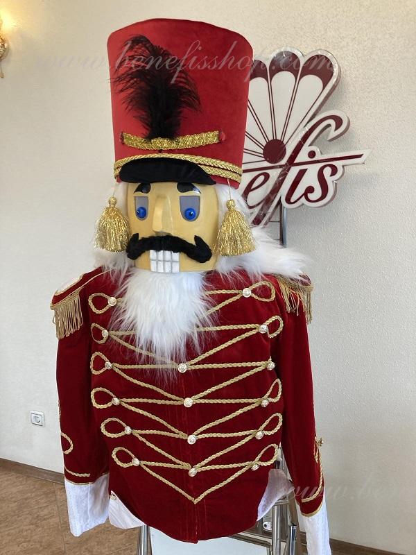 This headdress is designed for the role of the Prince in the ballet The Nutcracker. The beautiful headdress is made of papier-mâché, the eyes are cut out so conveniently that the actor can freely see the stage from the inside during the dance. The hat is made of foam rubber covered with fabric. This mask has a special fastening inside so that the mask stays well on the actor's head.