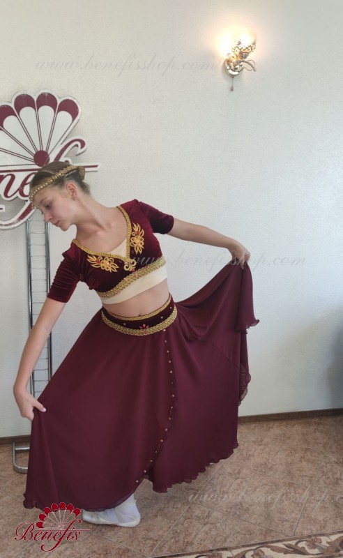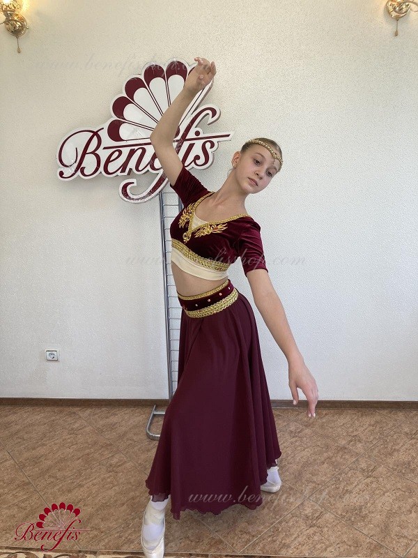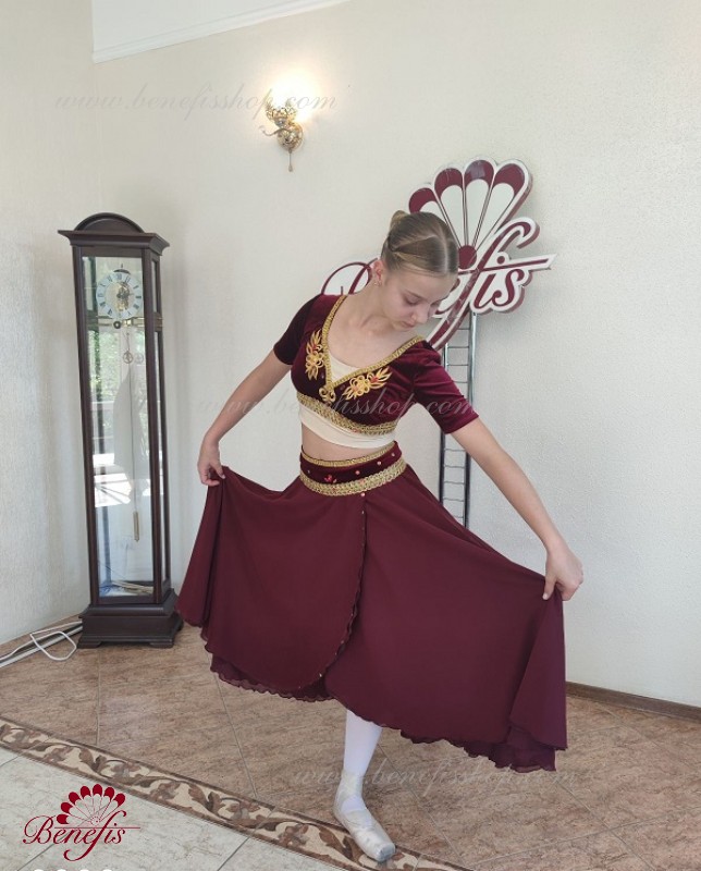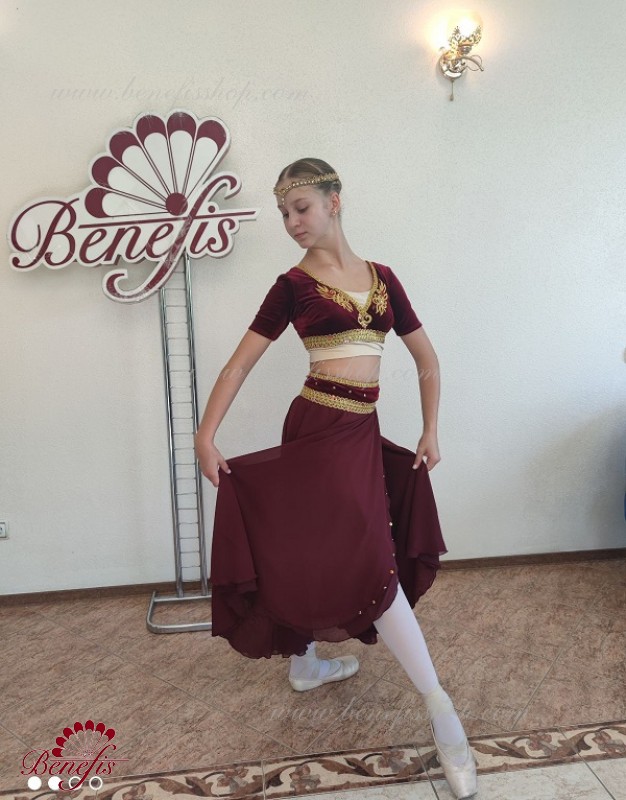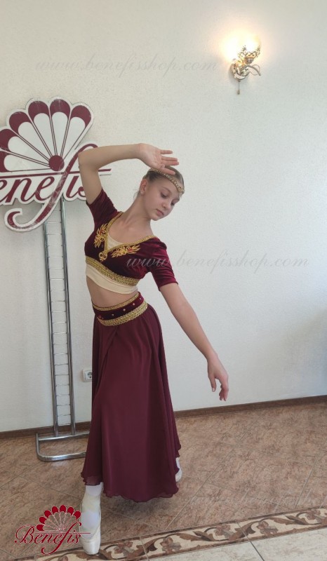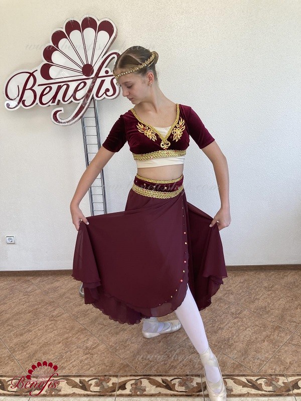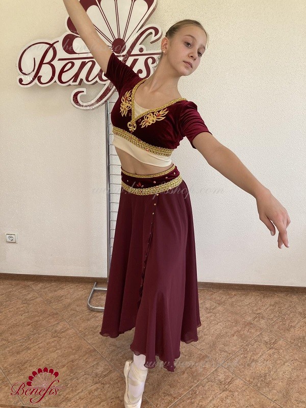 The skirt is made of double layered chiffon, has a supplex basque. The following are used as decoration: applications, ribbons, sparkles, rhinestones and beads.