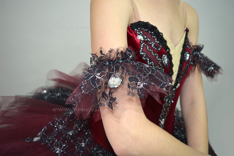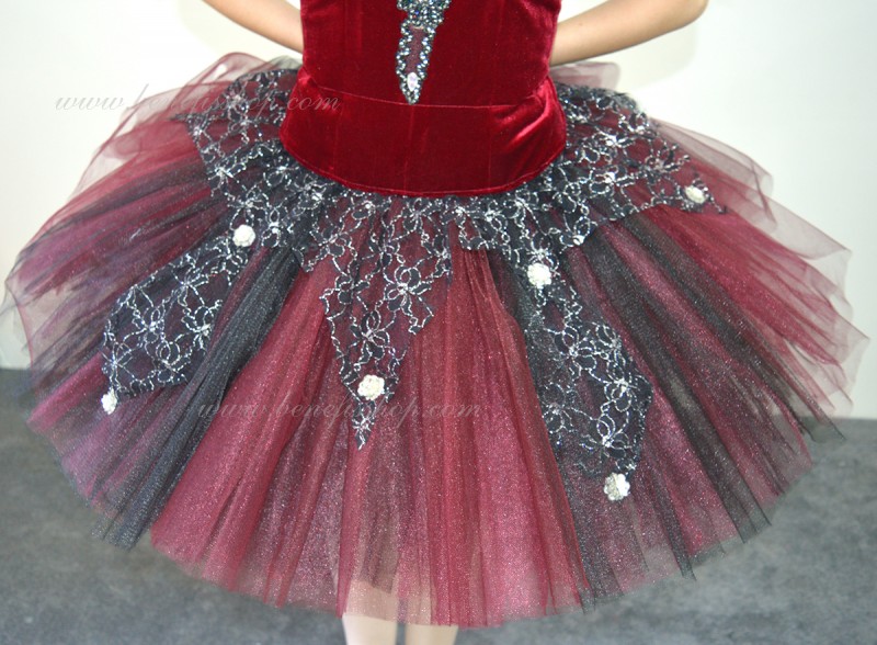 The skirt consists of 9 layers. The 3 upper layers are made of soft tulle, the other layers are made of stiff tulle. The length of the skirt is made according to the customer’s wish.