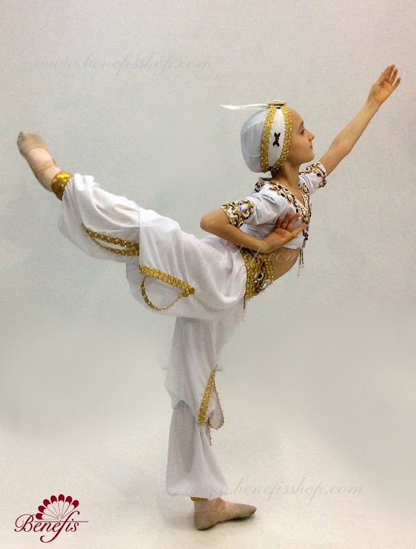 The trousers are made of crepe chiffon in oriental style, with slits in the front.