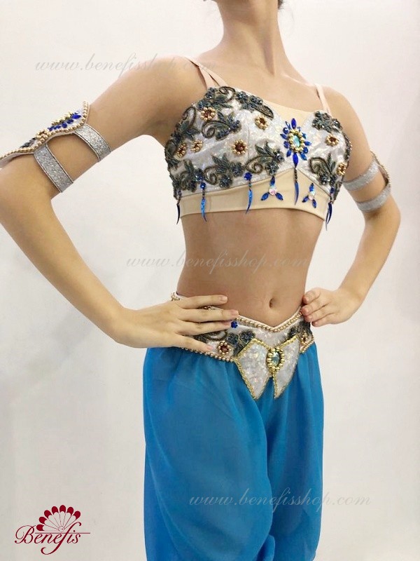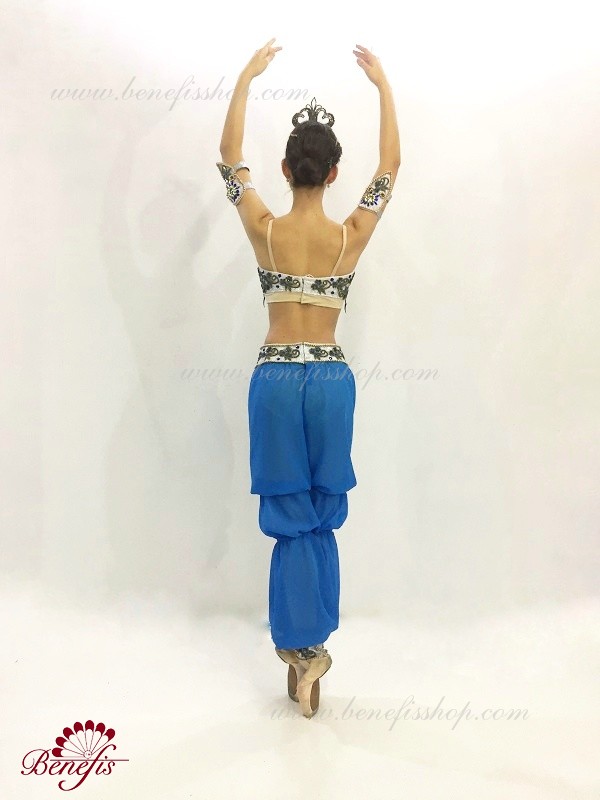 Details:A top,cuffs on the arms, trousers. A top, a yoke,cuffs on trousers made of biflex, trousers made of viscose.The headdress is not included in the price of the suit.Rhinestones, sequins, and appliques are used as decor.