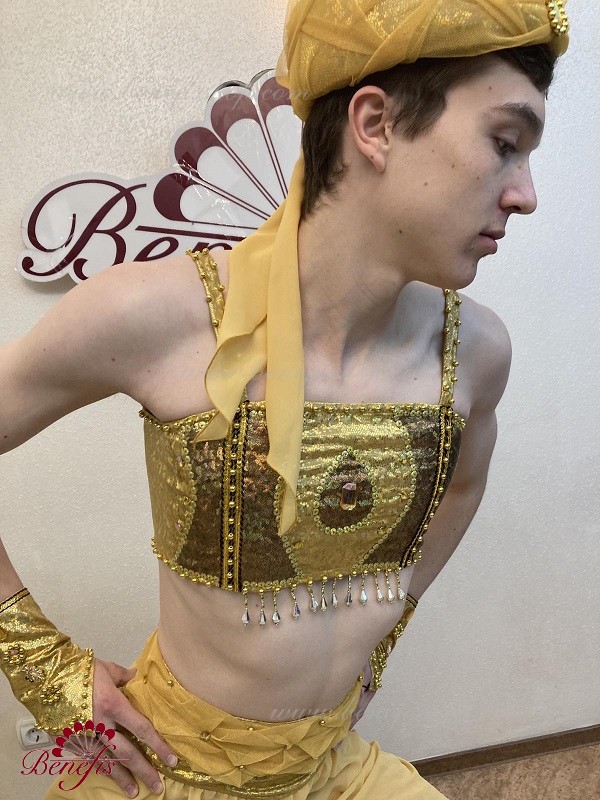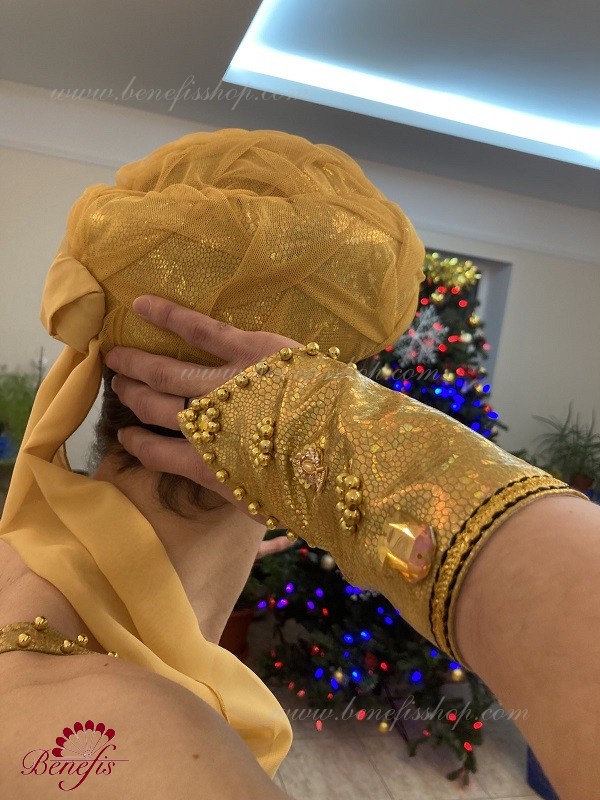Details:bodice,trousers,cuffs, turban.The bodice and cuffs are made of laser biflex, trousers and turban are made of mesh with dusting.