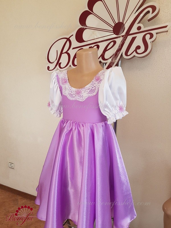 Details: dress, sleeves. The dress consists of a leotard with a skirt and sleeves. The leotard can be made of supplex fabric (100% lycra) or cotton-stretch fabric (85% cotton, 15% lycra).