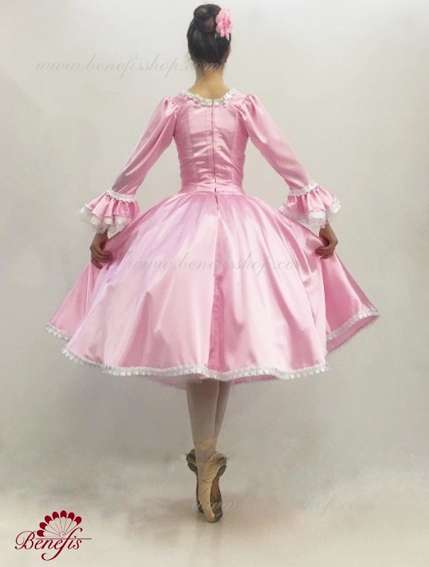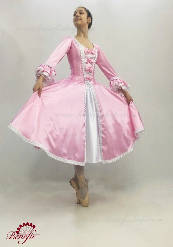 Details: dress. This is a ballet, stage, professional costume. Made from thin, semi-elastic satin. The bodice fastens at the back with two rows of hooks and loops. The base skirt T0003 made of light tulle gives a splendor to the skirt.