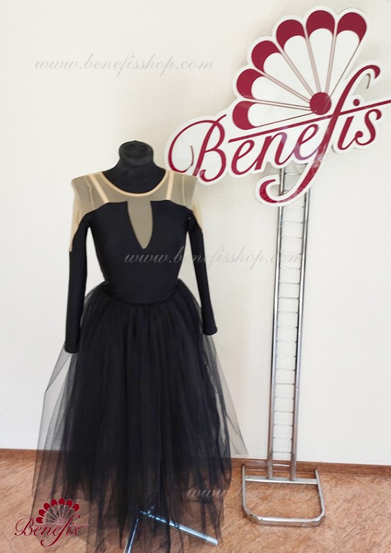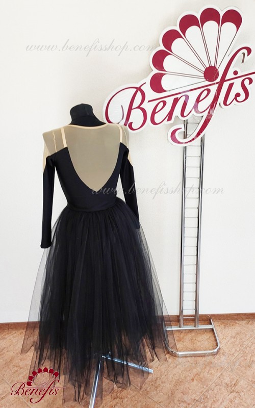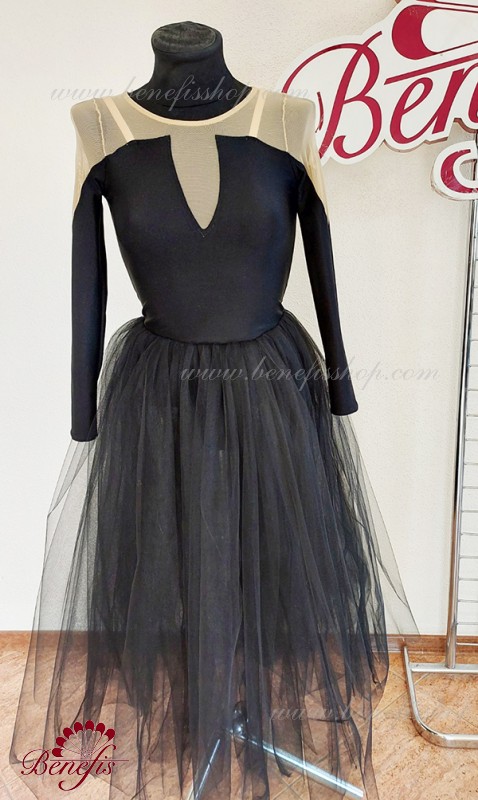 This stage ballet costume is built on the base of leotard that is made of elastic fabric (supplex) and has nude straps. The skirt is made of 4 layers of soft and rigid tulle.