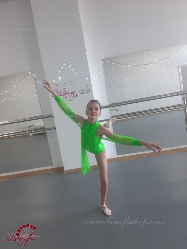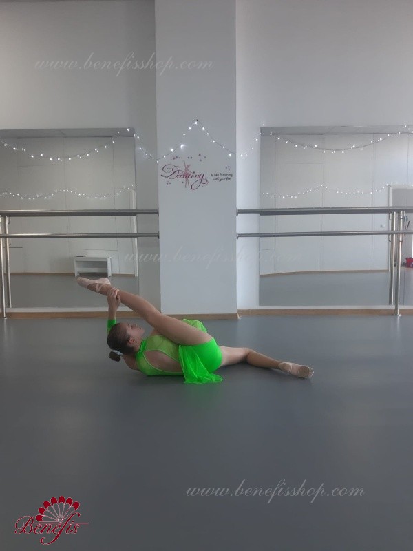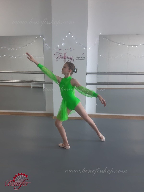 This model can be made of suplex fabric (100% lycra) or cotton – stretch fabric (85% cotton, 15% lycra).Asymmetrical skirt on the front made of light fabric.