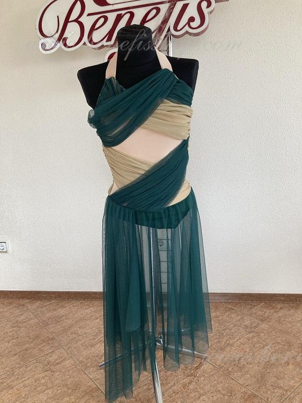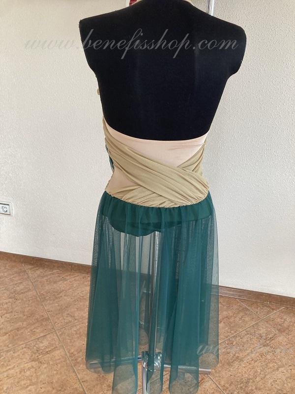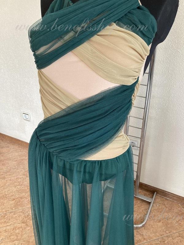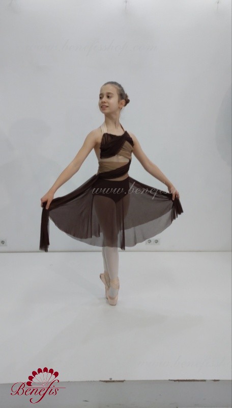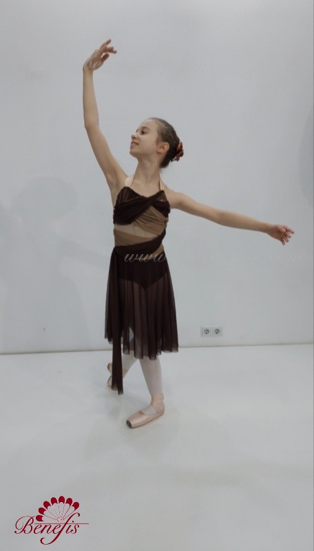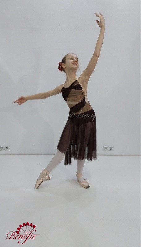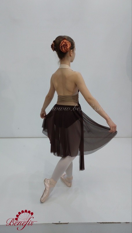 Details: Dress. Made of solid mesh, the chest line is duplicated by a solid biflex. Underpants made of brown biflex. The back of the swimsuit with a low cut to the waistline. The front of the swimsuit is decorated with a fine mesh fabric.