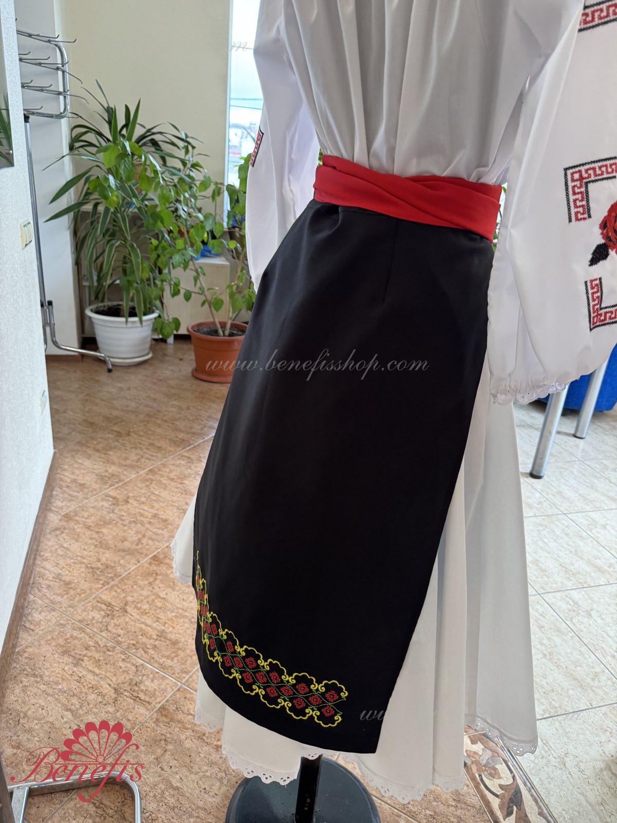 For women and girls: being composed of a white blouse and skirt, an over-skirt and waist, all imitating some prints inspired by the popular Moldovan models.Blouse, belt are not included in the price. In addition to the skirt, you can order blouse J0376 belt J0370.