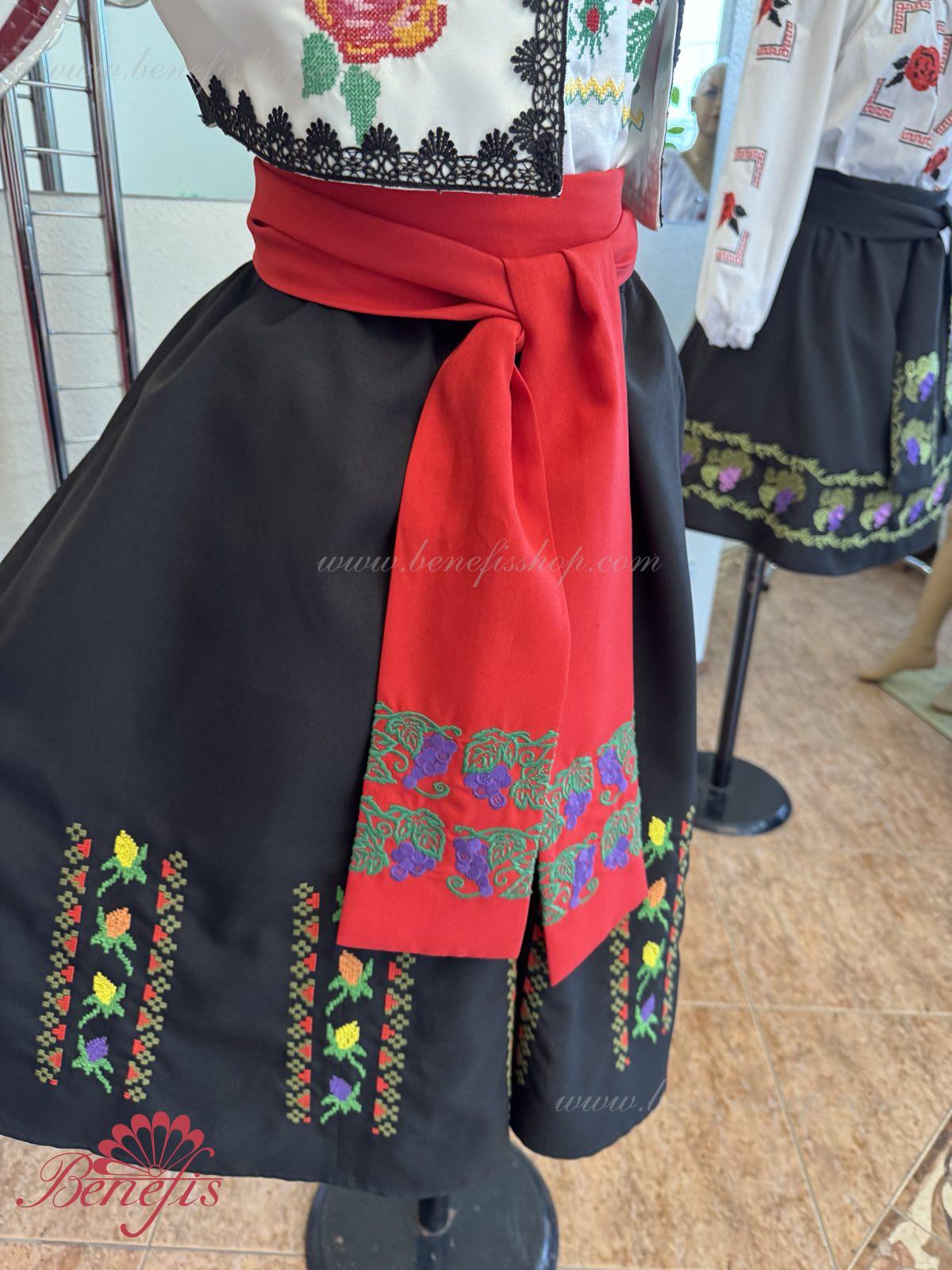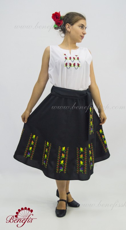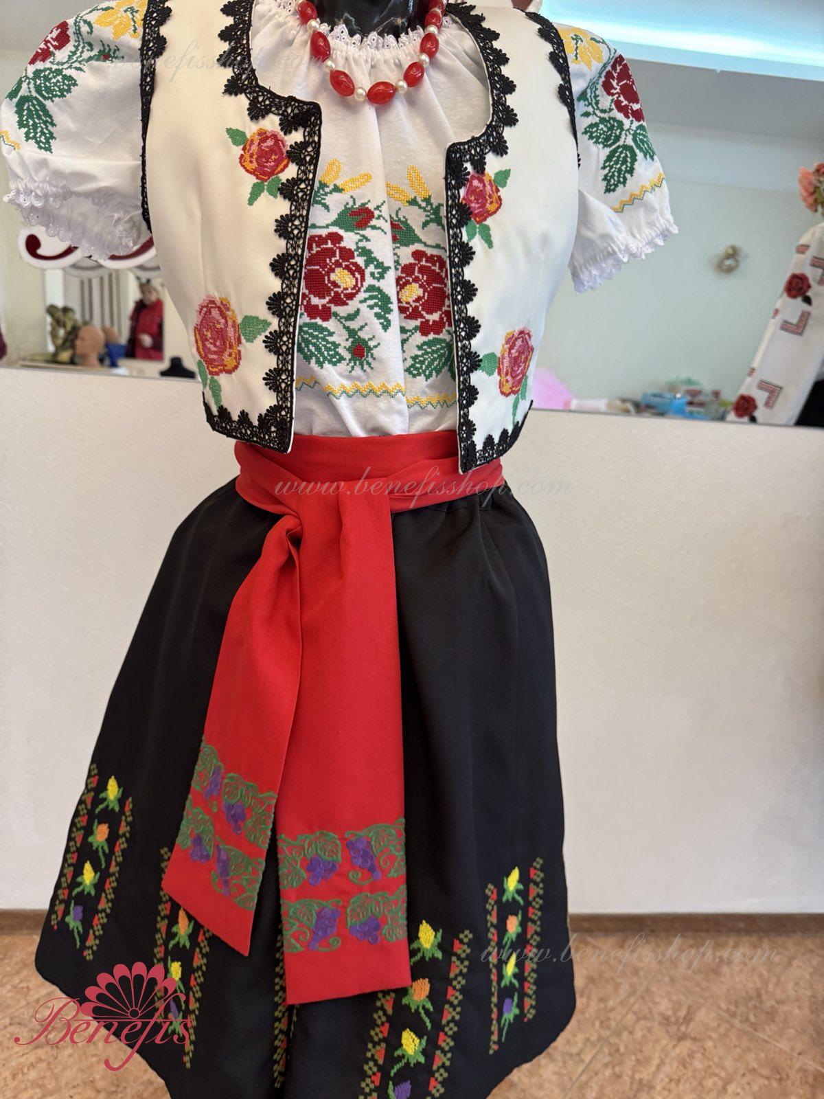 For women and girls: being composed of a white blouse and skirt, an over-skirt and waist, all imitating some prints inspired by the popular Moldovan models.Blouse, belt and vest are not included in the price. In addition, a blouse J0365, a belt J0370, and a vest J0017 can be ordered with a skirt.