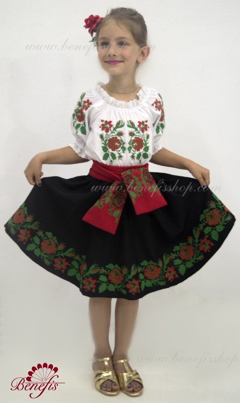The blouse is made of shirt fabric. An elastic band is inserted on the neckline and arm ruffles and is decorated with natural lace. The embroidery is made in the national style on a special machine.