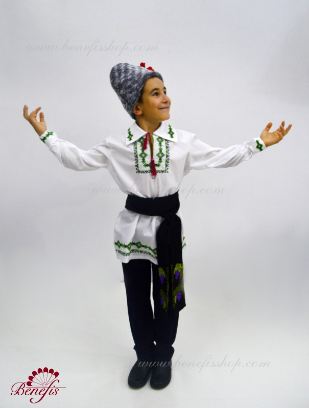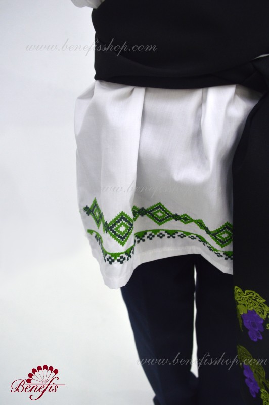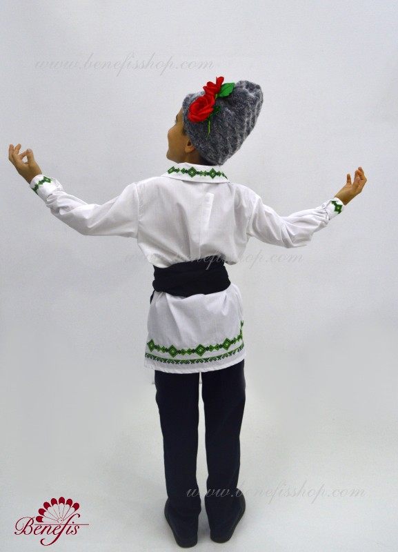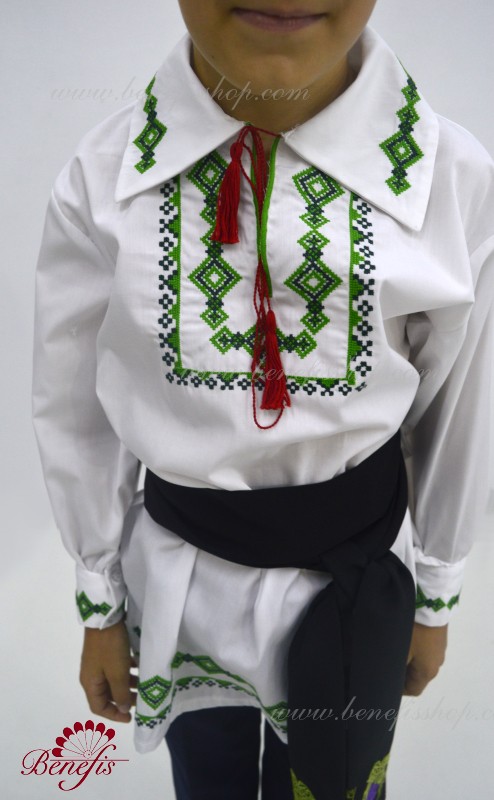Details: shirt. A shirt for a national costume for a boy is a shirt with a long sleeve made of magpie fabric. The collar, bottom and sleeves of the shirt are decorated with threads with national motifs. The embroidery is made on a special machine.