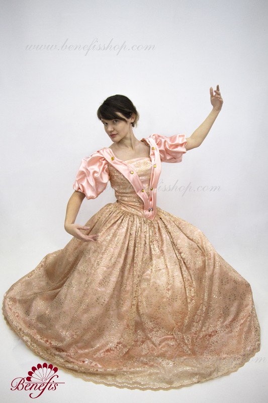Details: Ballet dress The bodice is made of semi-elastic dense fabric and fastens with two rows of hooks and loops. For convenience, the bodice is adjustable with a lace in the chest area. The skirt is made of tulle in 3 layers of 16 wedges on a strip with a yoke. The 2-layer cover is made of satin with guipure. Decor: rhinestones.