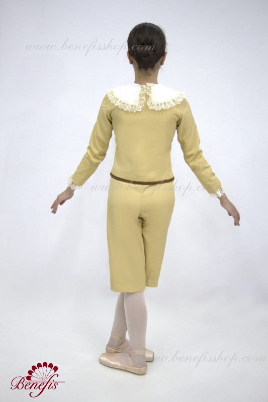 Details: tunic, blouse, shorts. Made of dense semi-elastic fabric. The tunic fastens at the front in the neck area. The blouse is equipped with a luxurious collar decorated with guipure. For the convenience of quick dressing, the shorts have an elastic band at the waist.