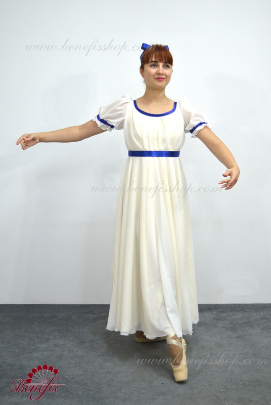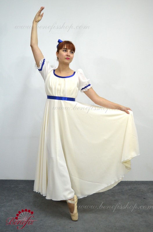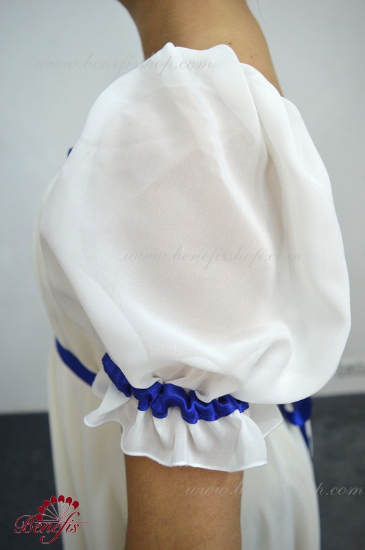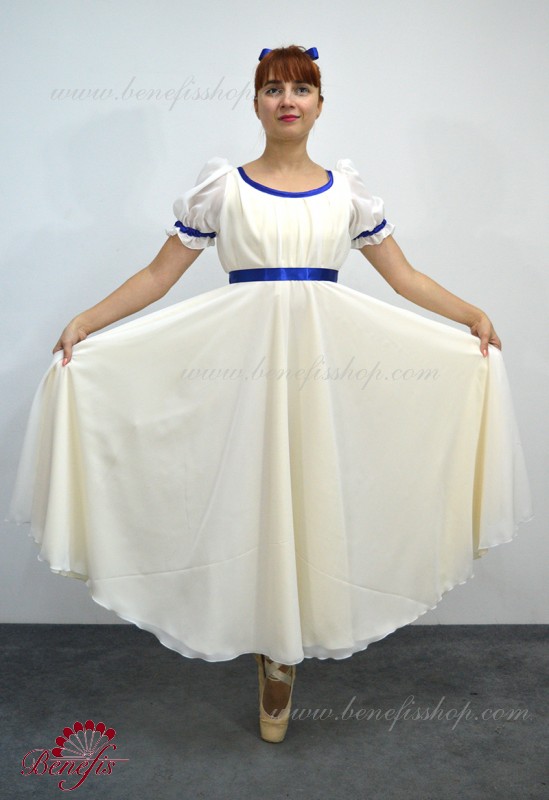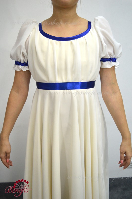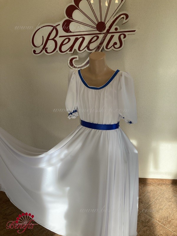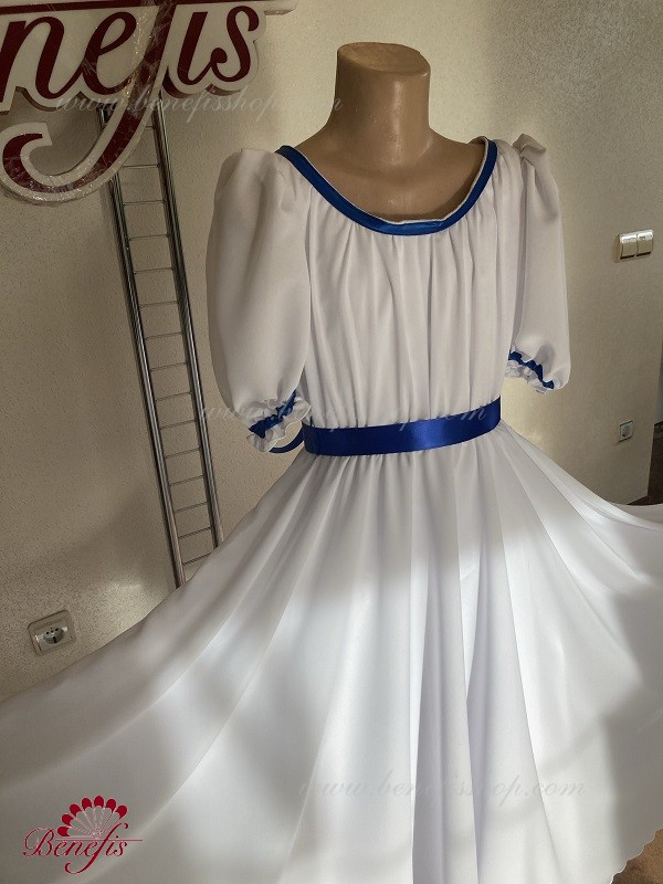 The dress is made from the semi elastic fabric on the basis is bodice with shoulder seams, dubbed chiffon sleeves - lanterns made of chiffon.