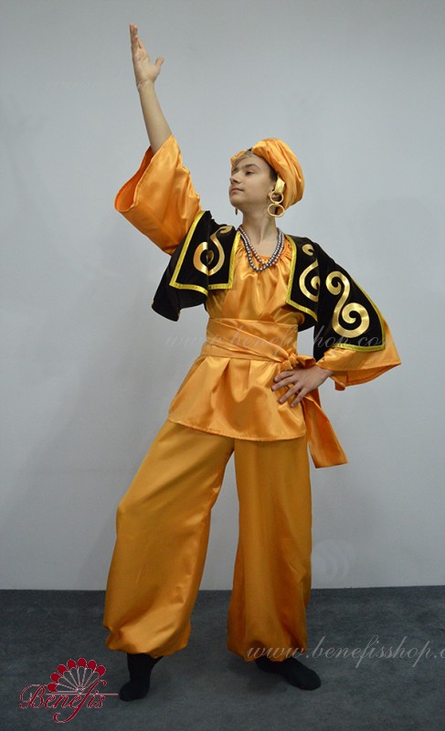Bolero: made of elastic fabric (velvet), trimmed over the edge with braid, decorative details of supplex used as ornamentation.