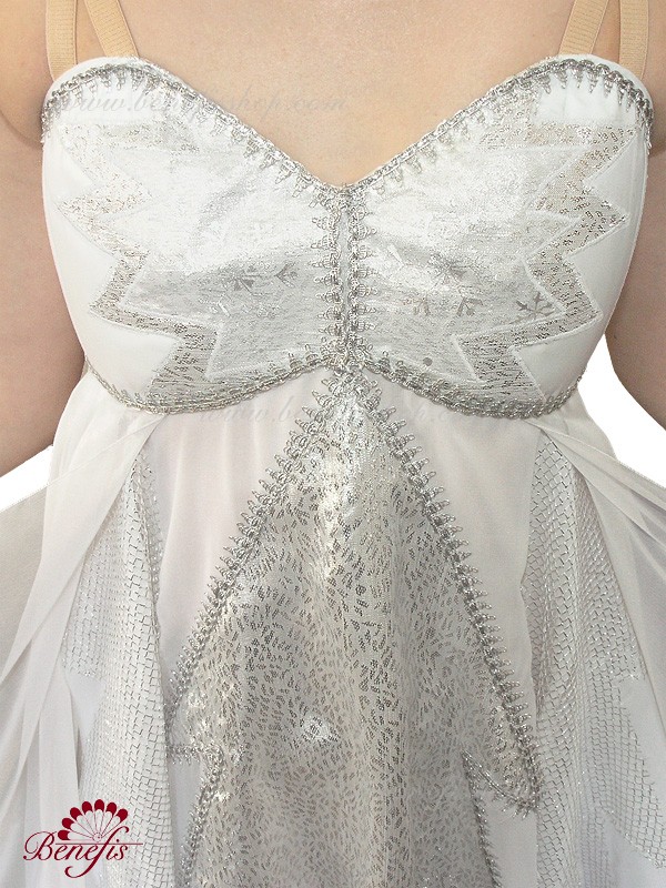 The costume "Snowflake" contains shortened underwired body. The double layer skirt ends with angles at the bottom.
