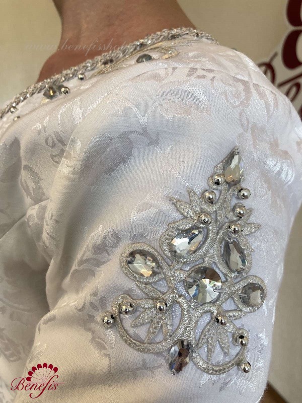 Fastens at the back with two rows of loops. As a decoration, braid, appliques, sequins, rhinestones and lace .