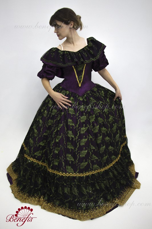 Details: dress. This is a professional, stage, ballet costume. Made of semi-elastic dense taffeta and lace fabric. The bodice is equipped with luxurious sleeves. Fastens at the back with two rows of hooks for convenient size adjustment. The skirt is splendid with delicate layers of tulle. Braid is used as a decoration.