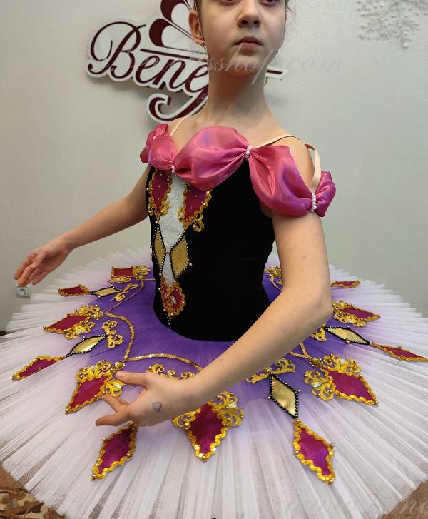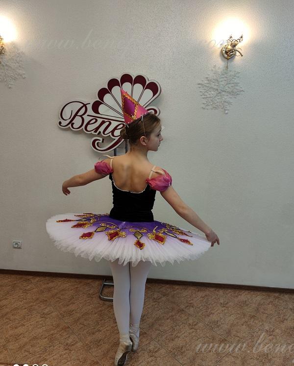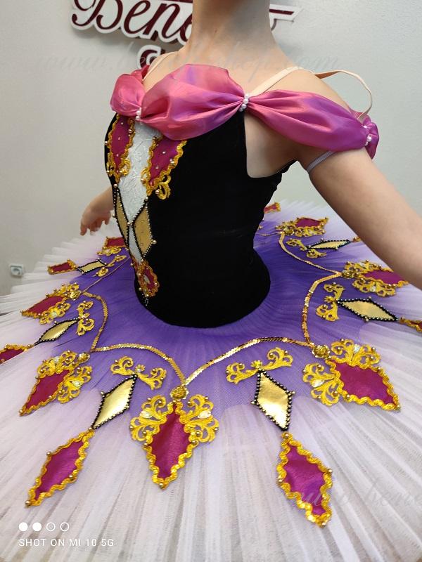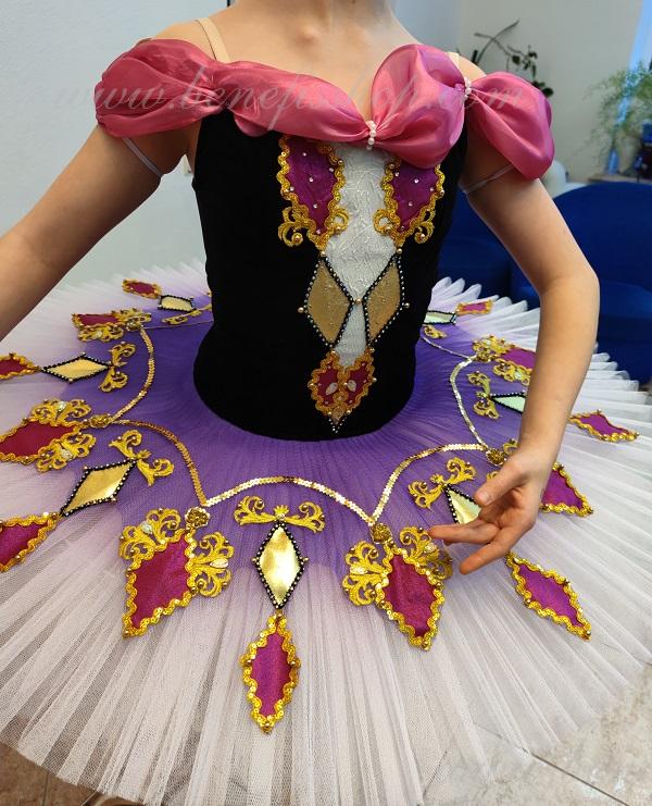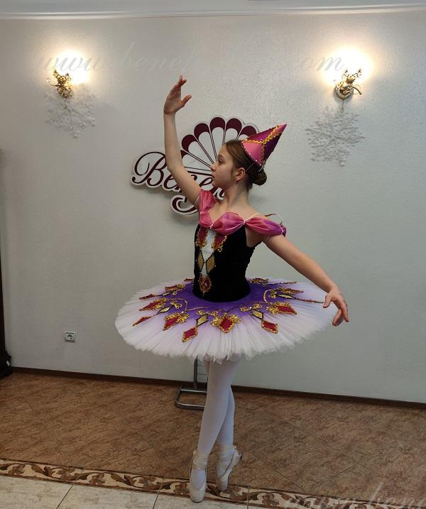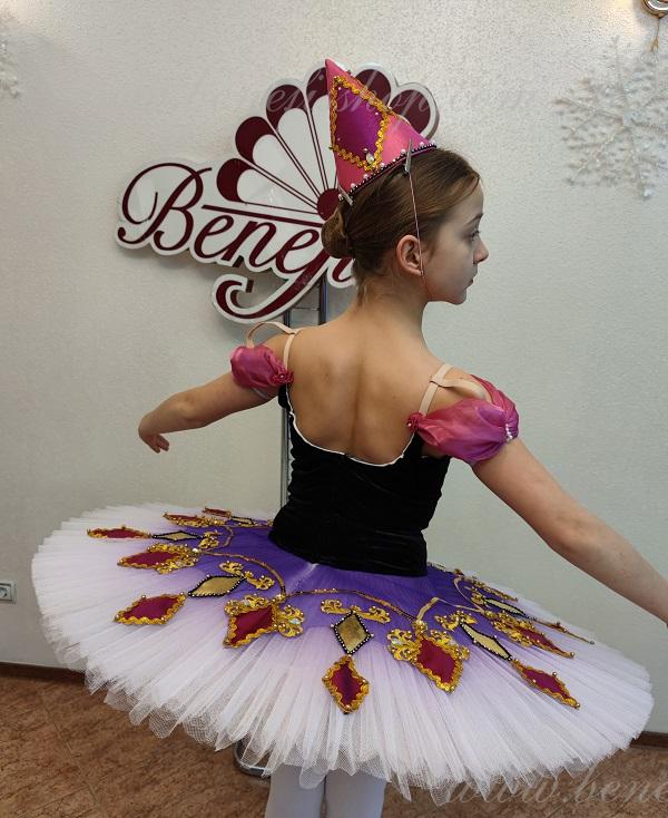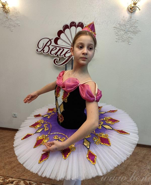 Details: costume, cap. The suit is based on the model T 0001.The headdress from the F0032 suit. The package is made of 8 layers of soft tulle on a hoop with biflex panties. Without a flirt. The decor is a tutu tire in the form of multi-colored diamonds, as well as braid, rhinestones, sequins. The terms of producing of the items (since the day of receiving the money on our account): 1. Ready-made kinds of production (leotards, tights, skirts) – from several days to 3 weeks, depending on the volume of order. 2. Stage costumes – during 4-6 weeks. 3. Special orders – during 4-6 weeks. 4. The claims are considered during 2 weeks since day of receiving the order by customer. 5. We guarantee express delivery on the indicated address.