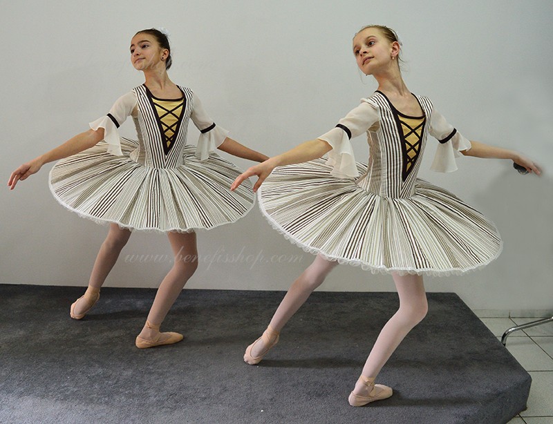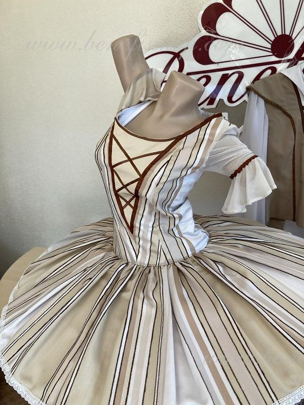 Basic details: this is a professional ballet stage costume, made on the basis of a bodice with shoulder seams with a small cap on the chest and sleeves made of mesh.