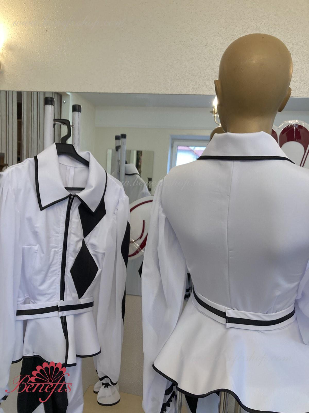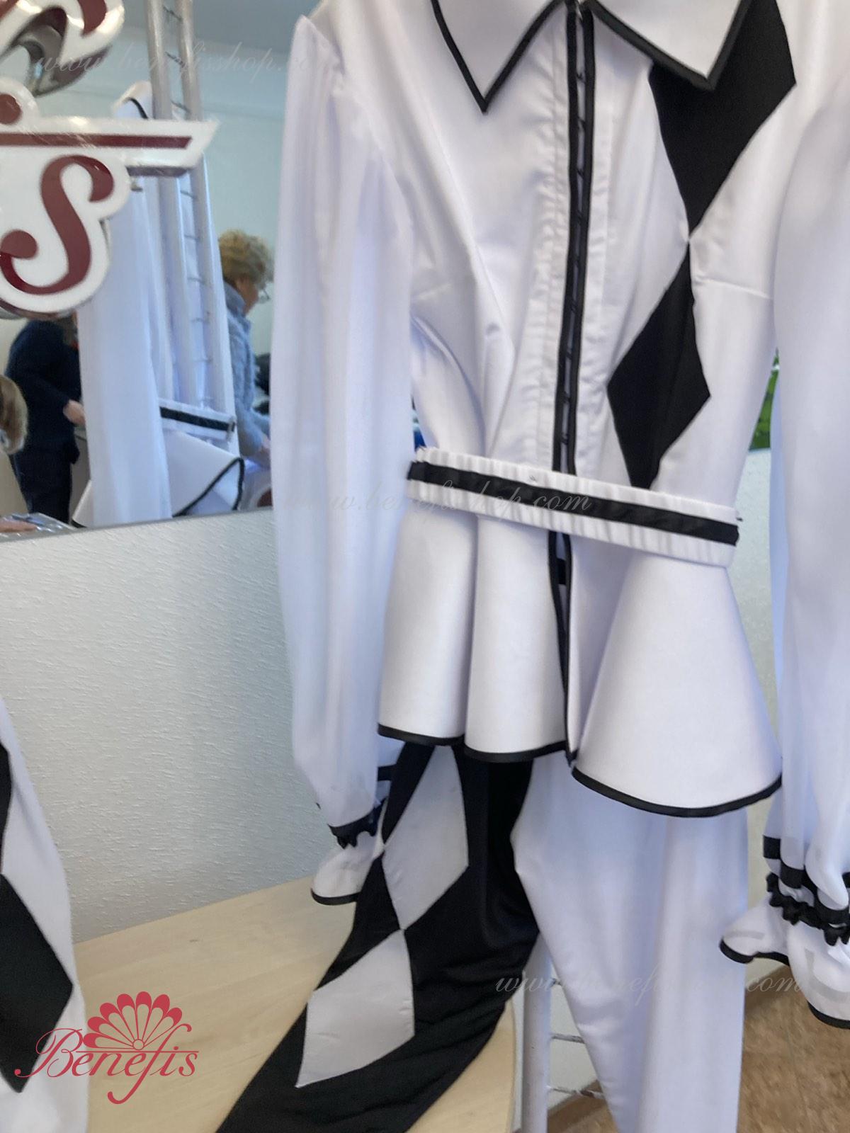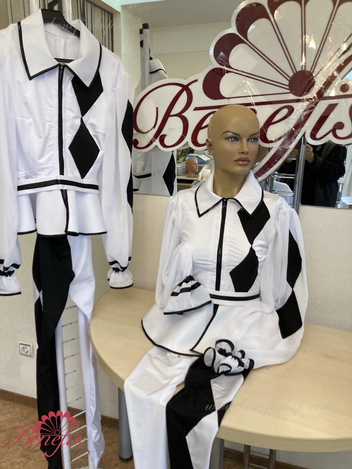 Details-collet and leggings. Made of elastic biflex with decorative diamonds.