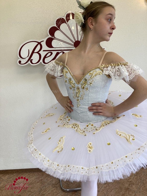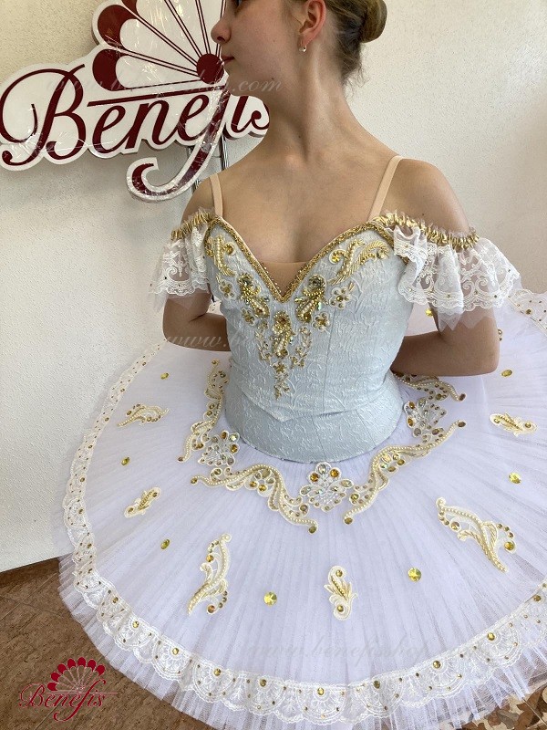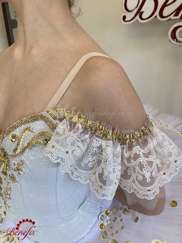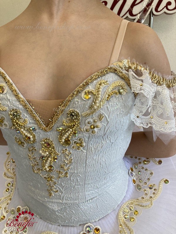 Details:costume. The bodice is adjustable. The stage costume is made on the basic basis of the T0013 bodice and the T0001B tutu. Decor: appliques, rhinestones, braid, sequins, beads.