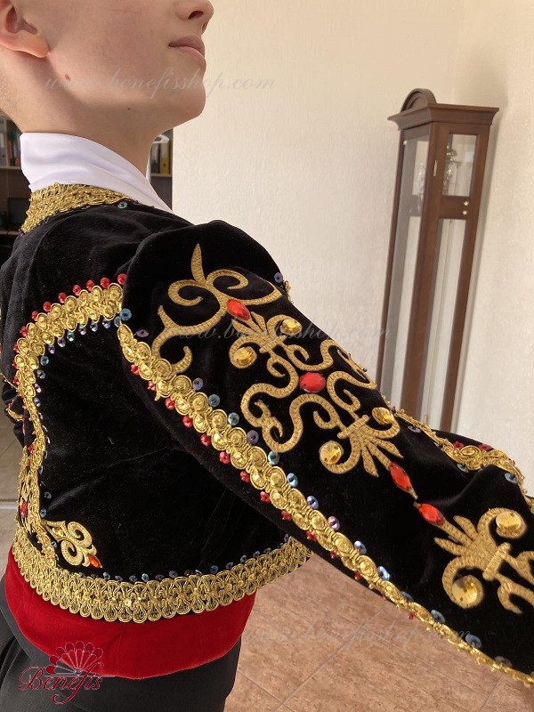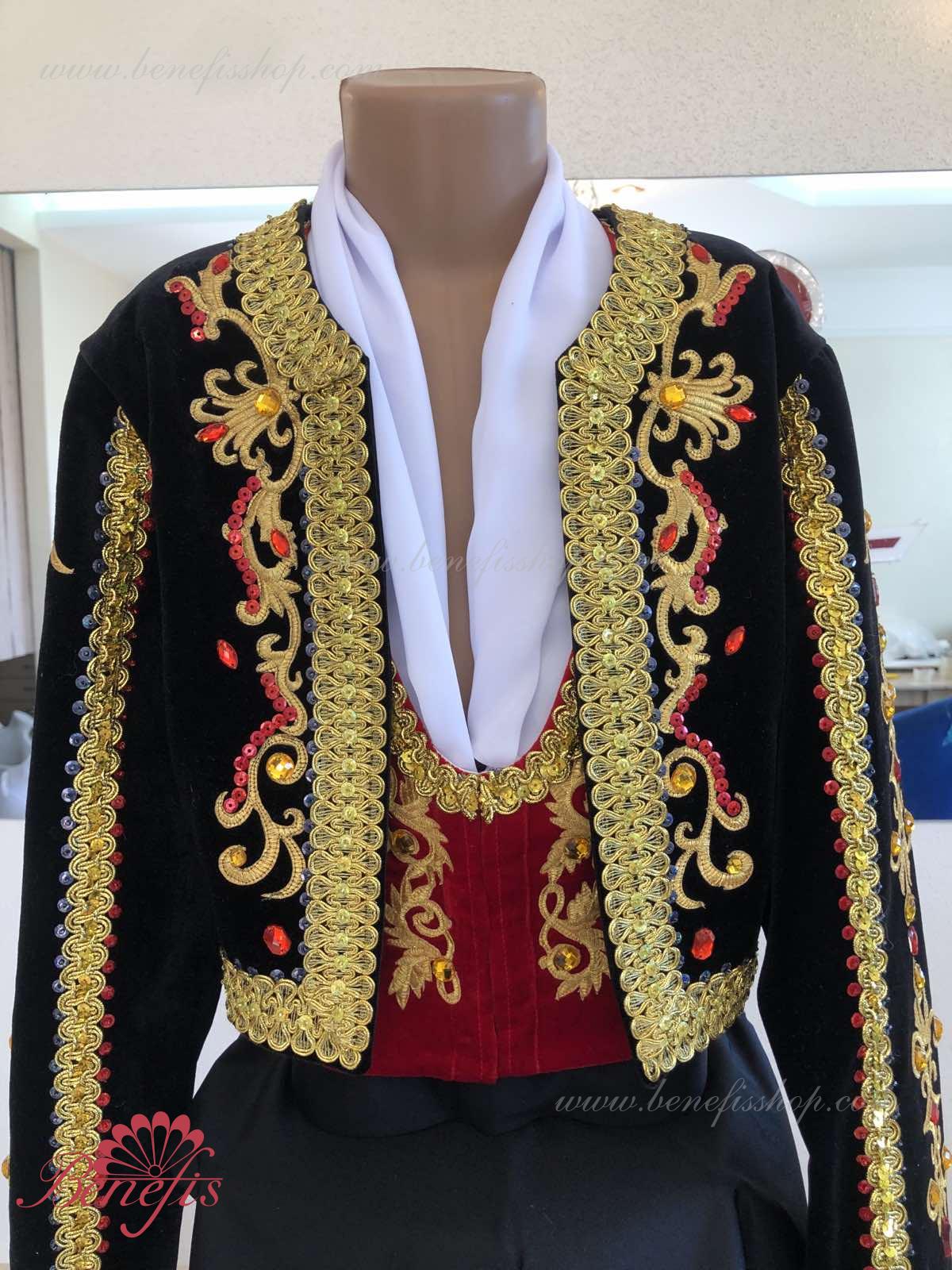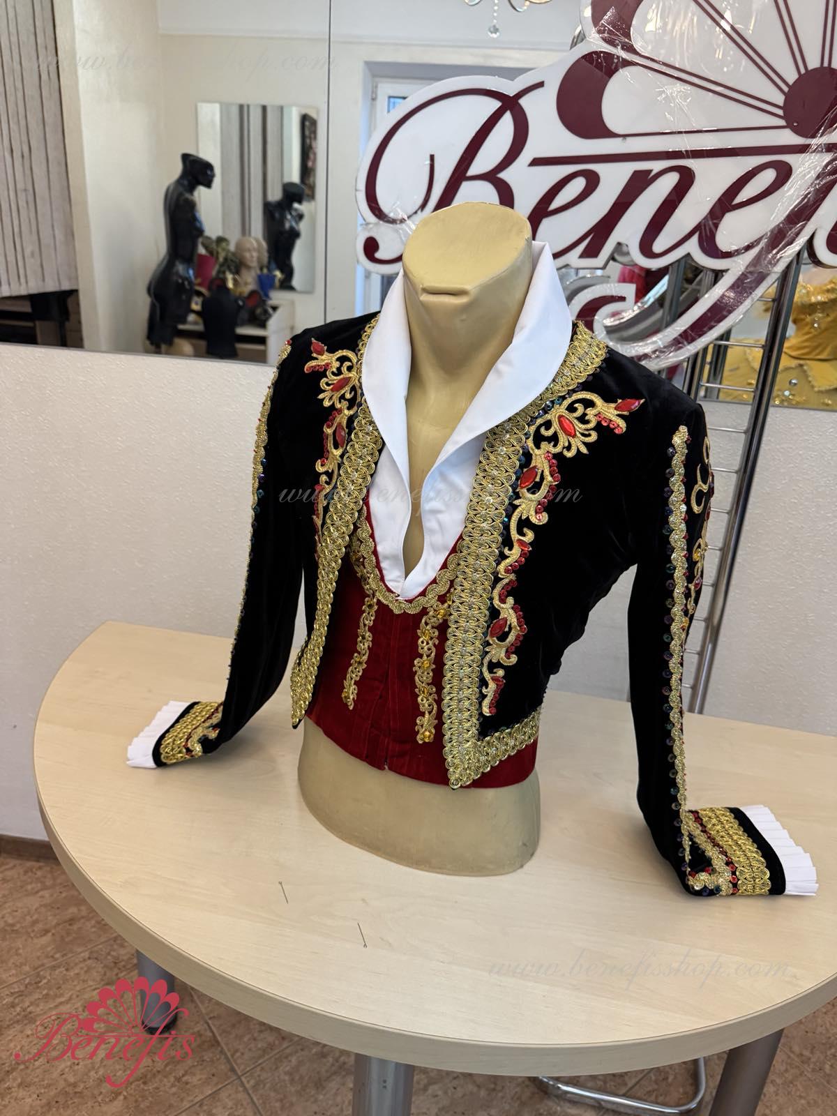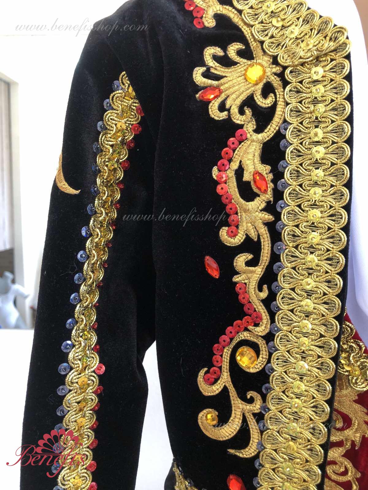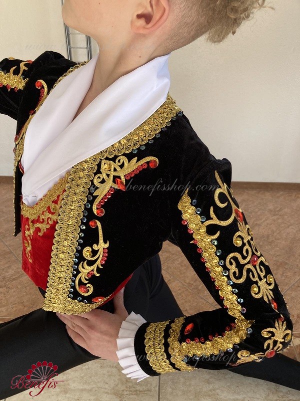 Details:jacket,footed tightst .It is a professional stage costume, which is made of black dense stretch velvet on a lining and has a short silhouette in the Spanish style traditions.