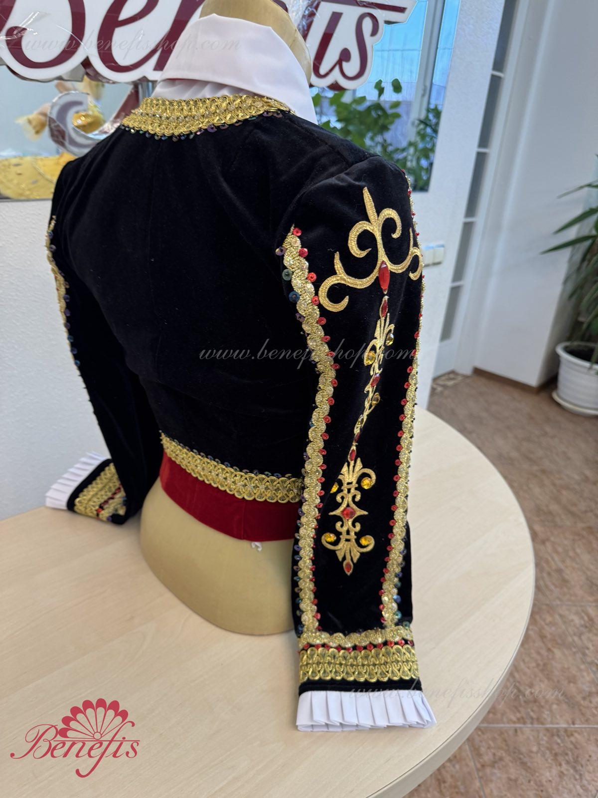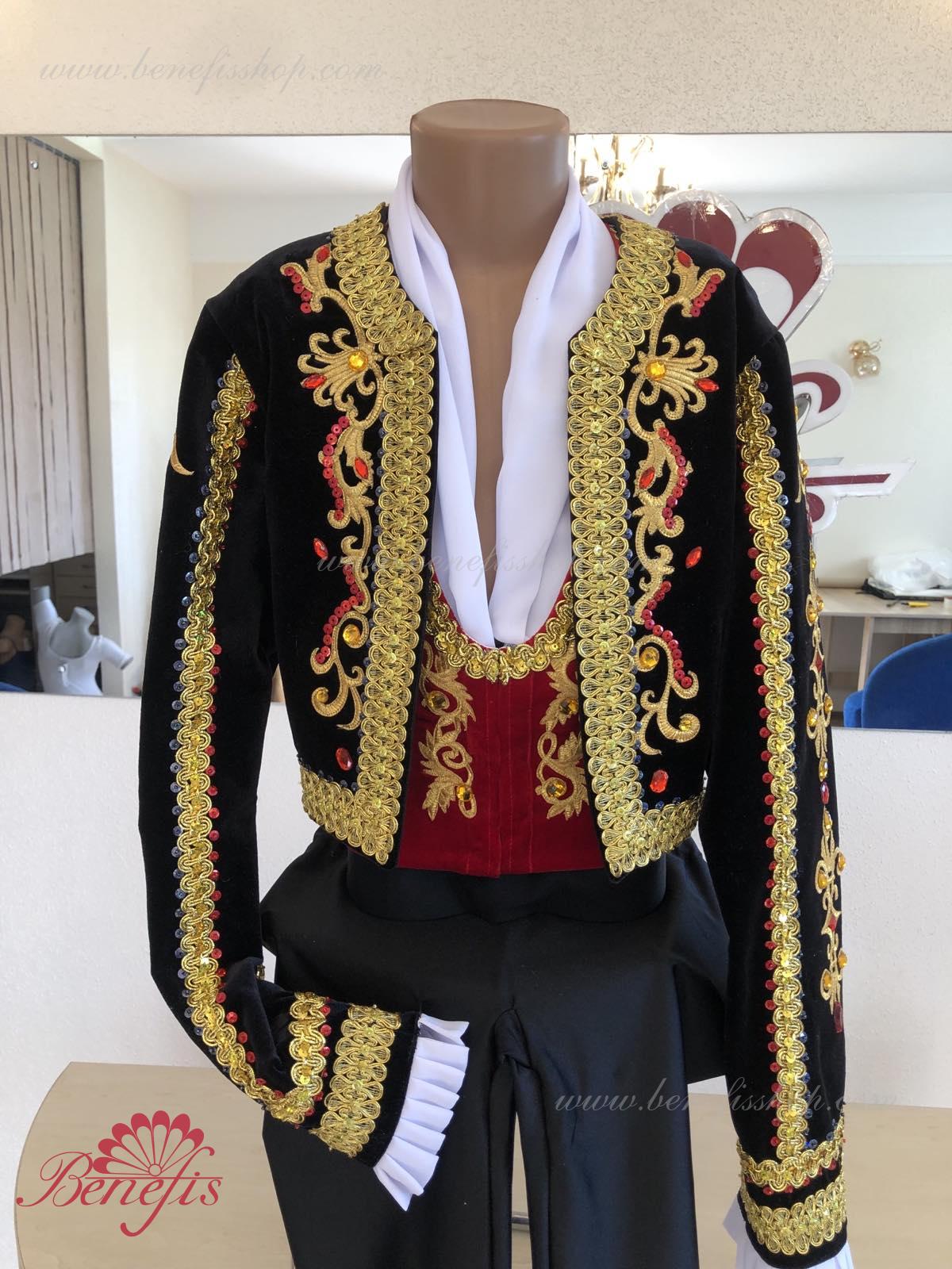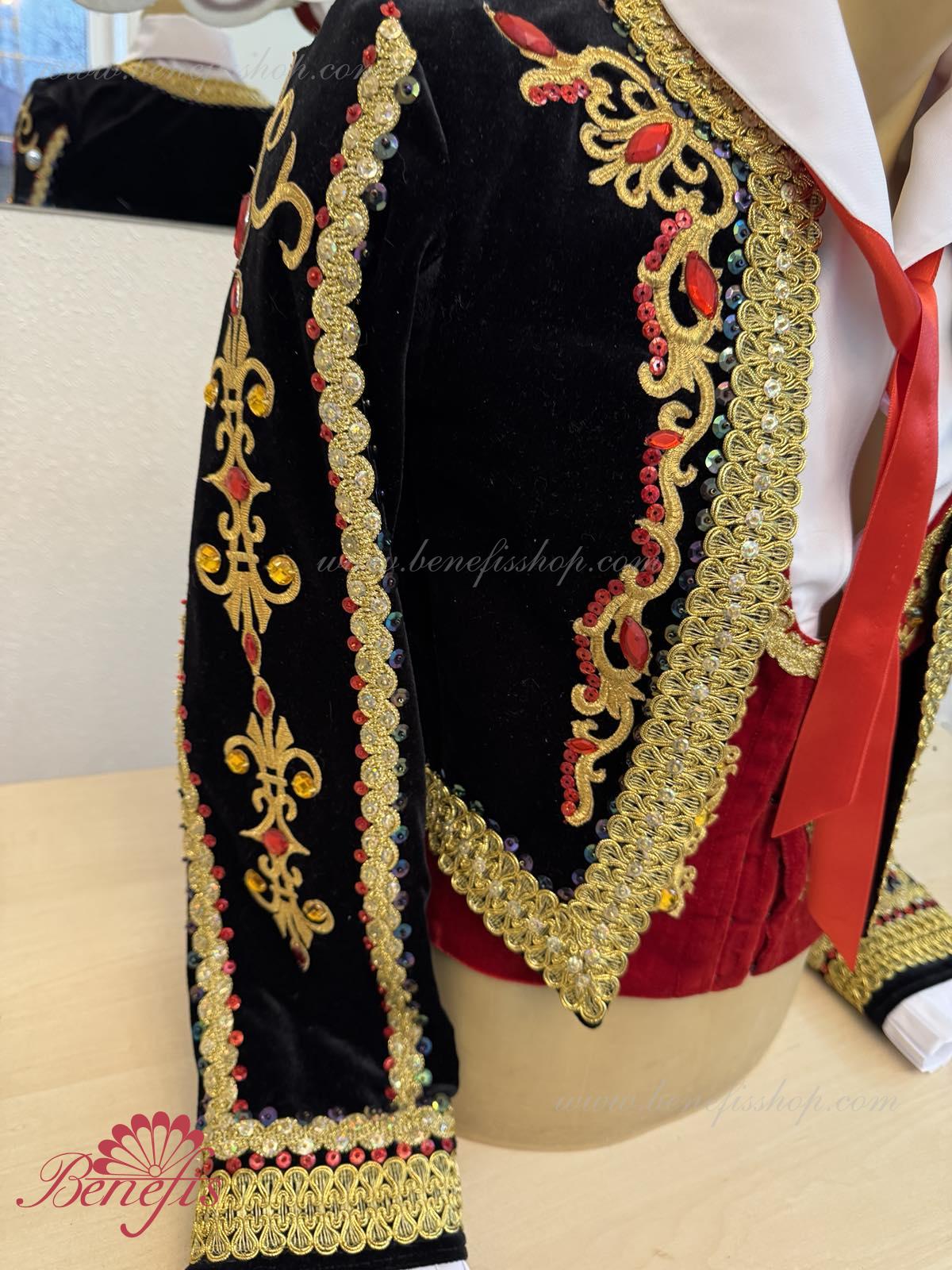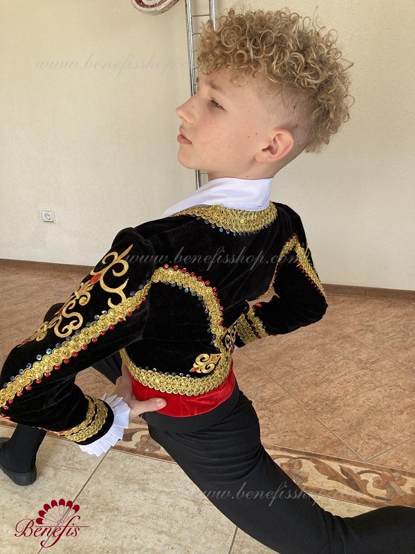 Details:jacket,footed tightst .It is a professional stage costume, which is made of black dense stretch velvet on a lining and has a short silhouette in the Spanish style traditions.